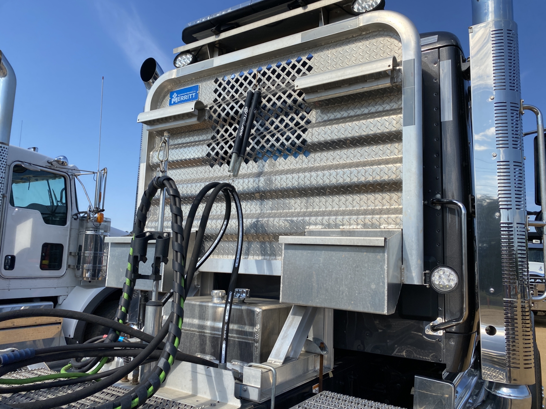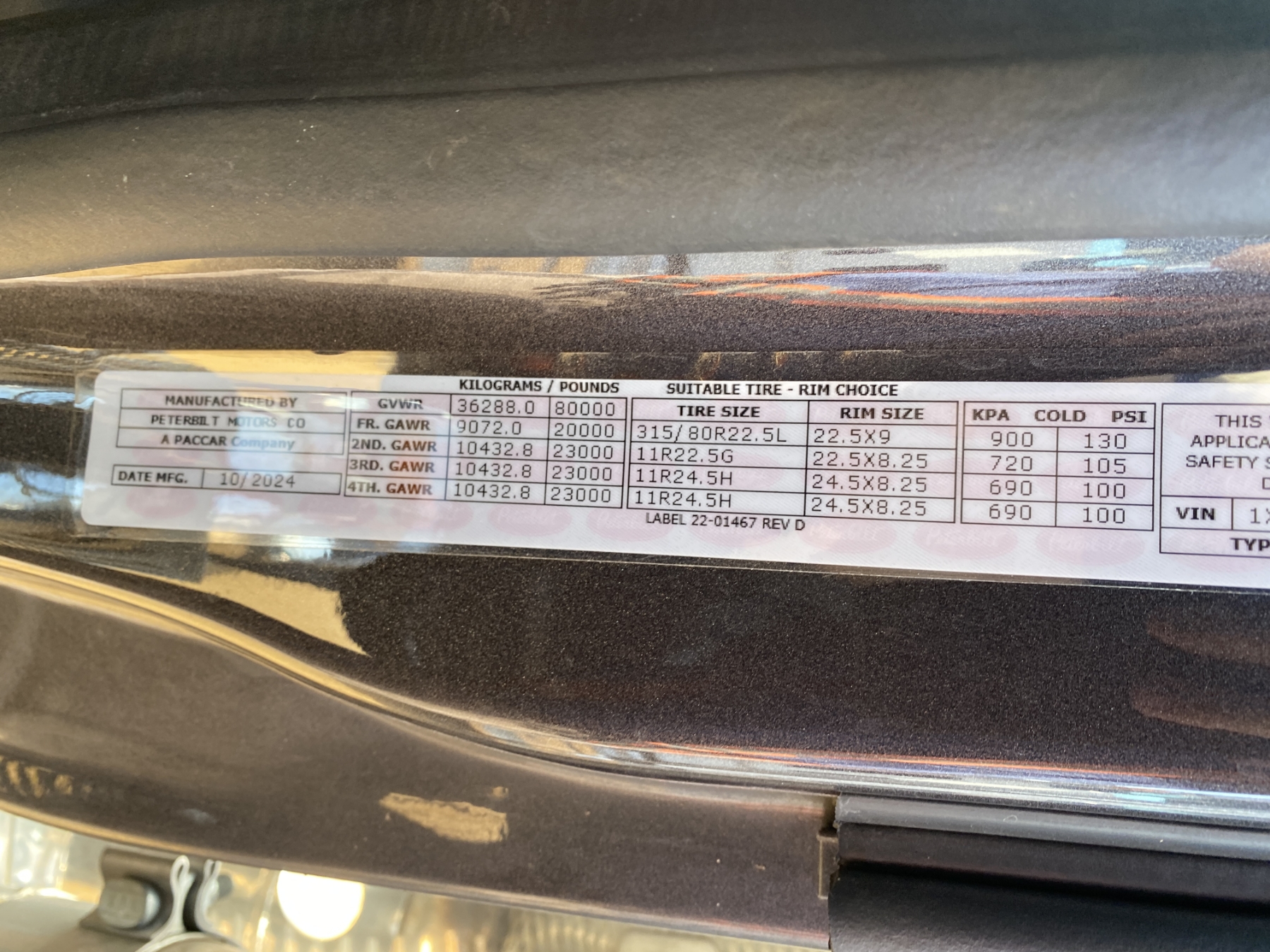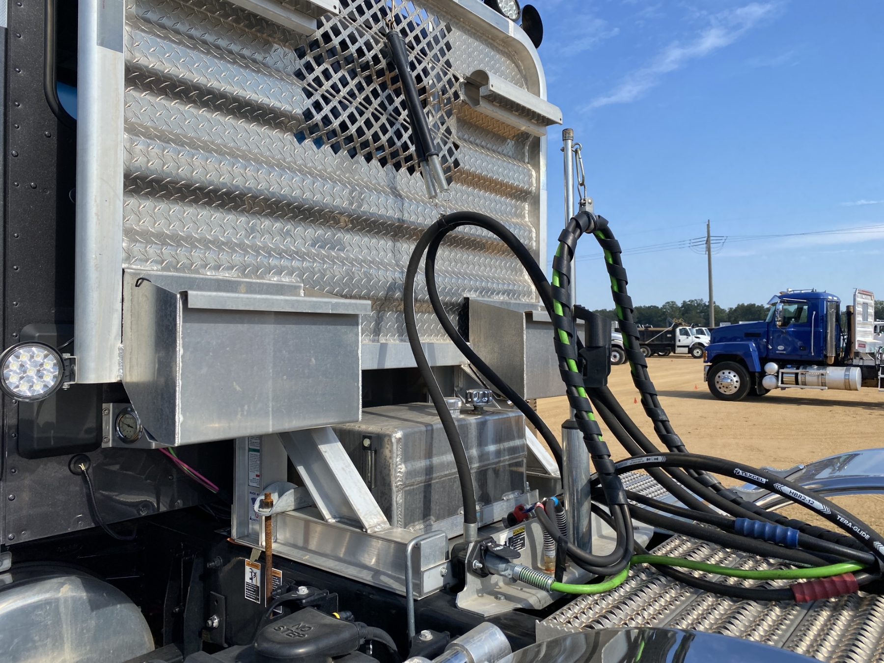 Tri Axle, 605 HP Cummins X15 engine, 18 speed trans, 46K rears, air ride, 20K front, 240" W/B, wet kit, alum headache rack, 11R24.5 rear tires, 315/80R22.5 front tires, all alum
