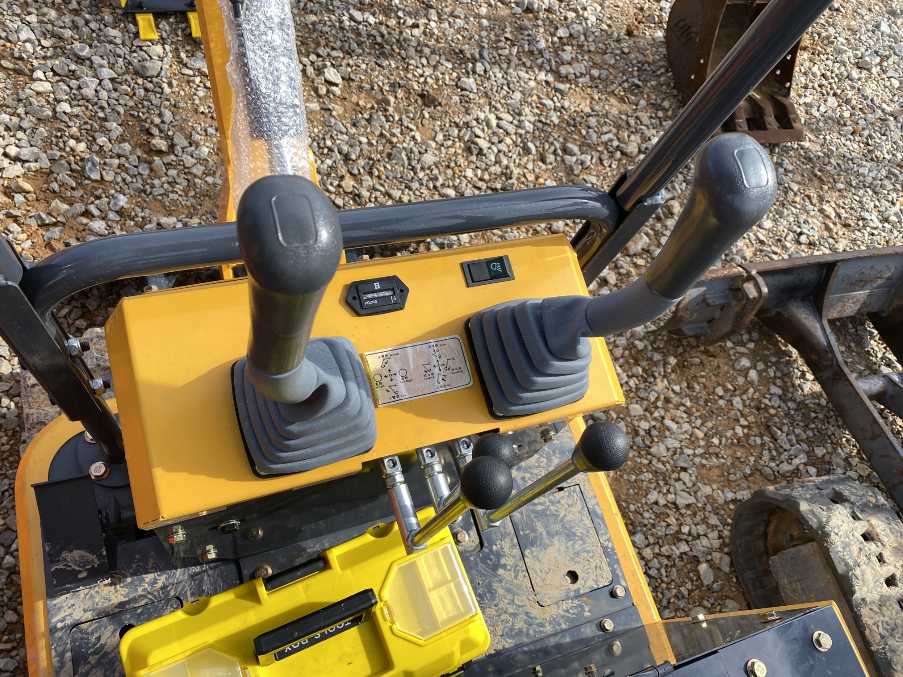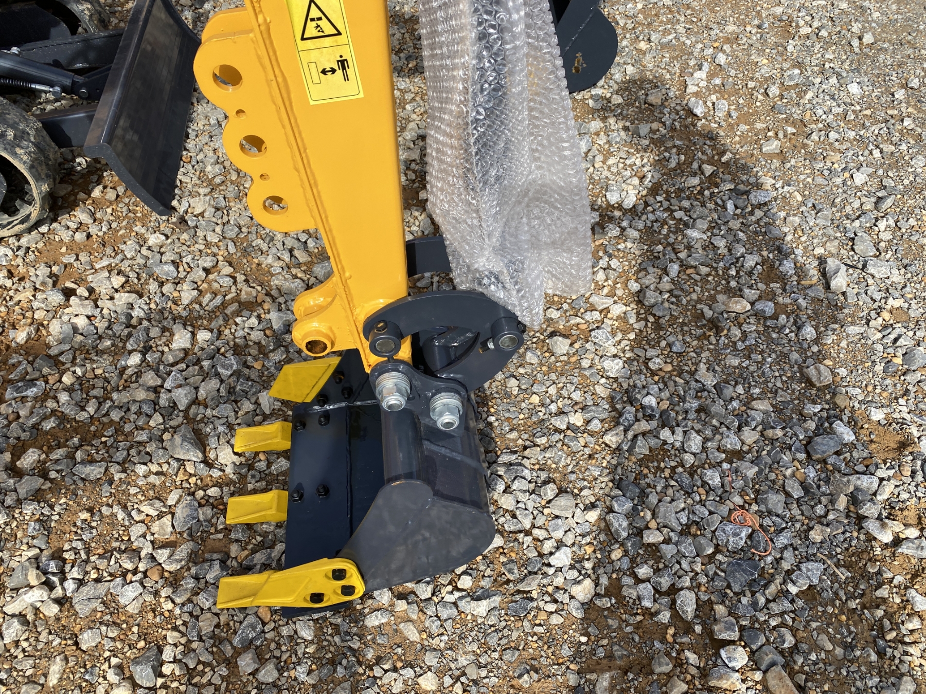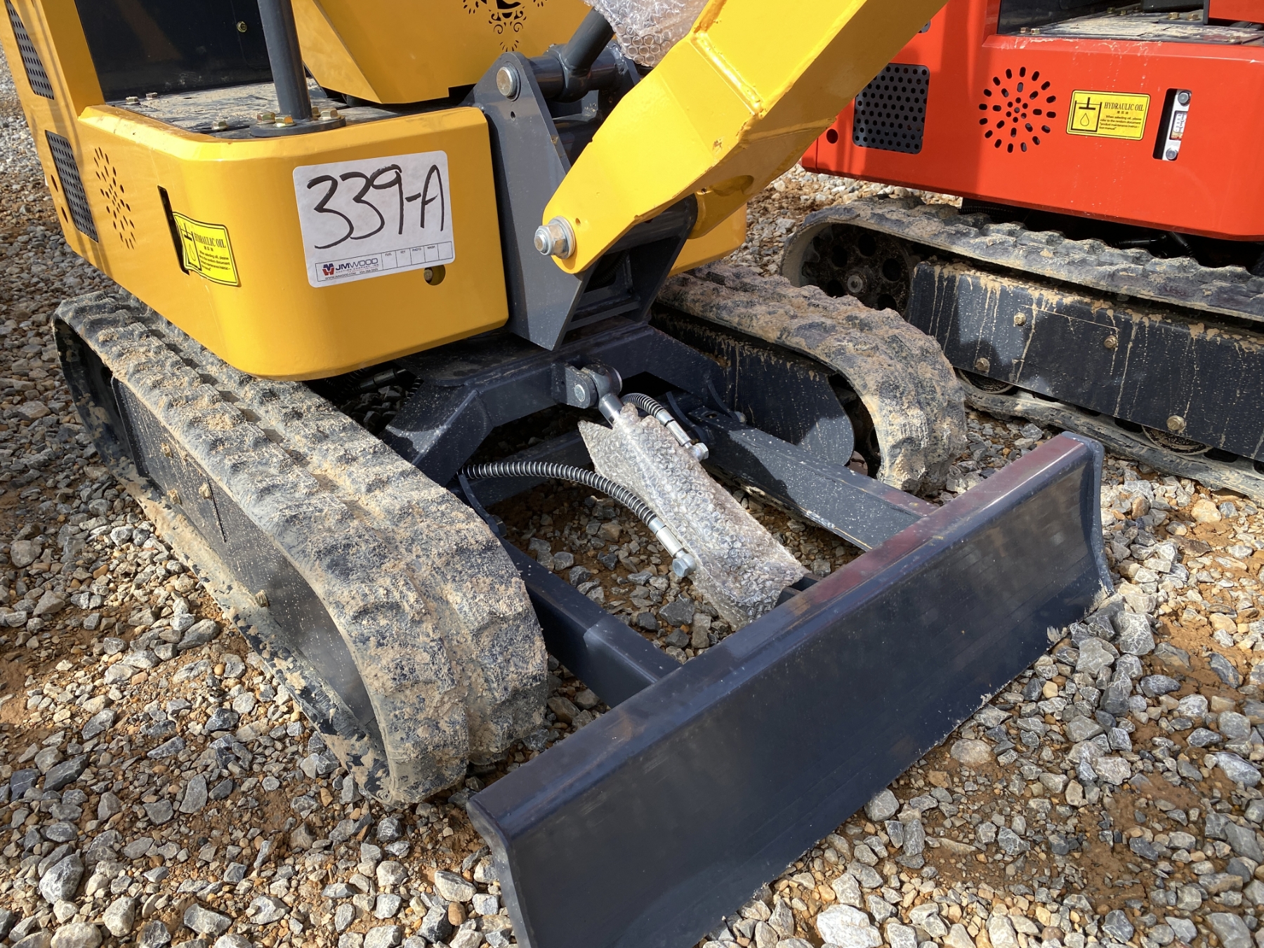 2' 4" stick, 15" bucket, blade, gas engine, canopy