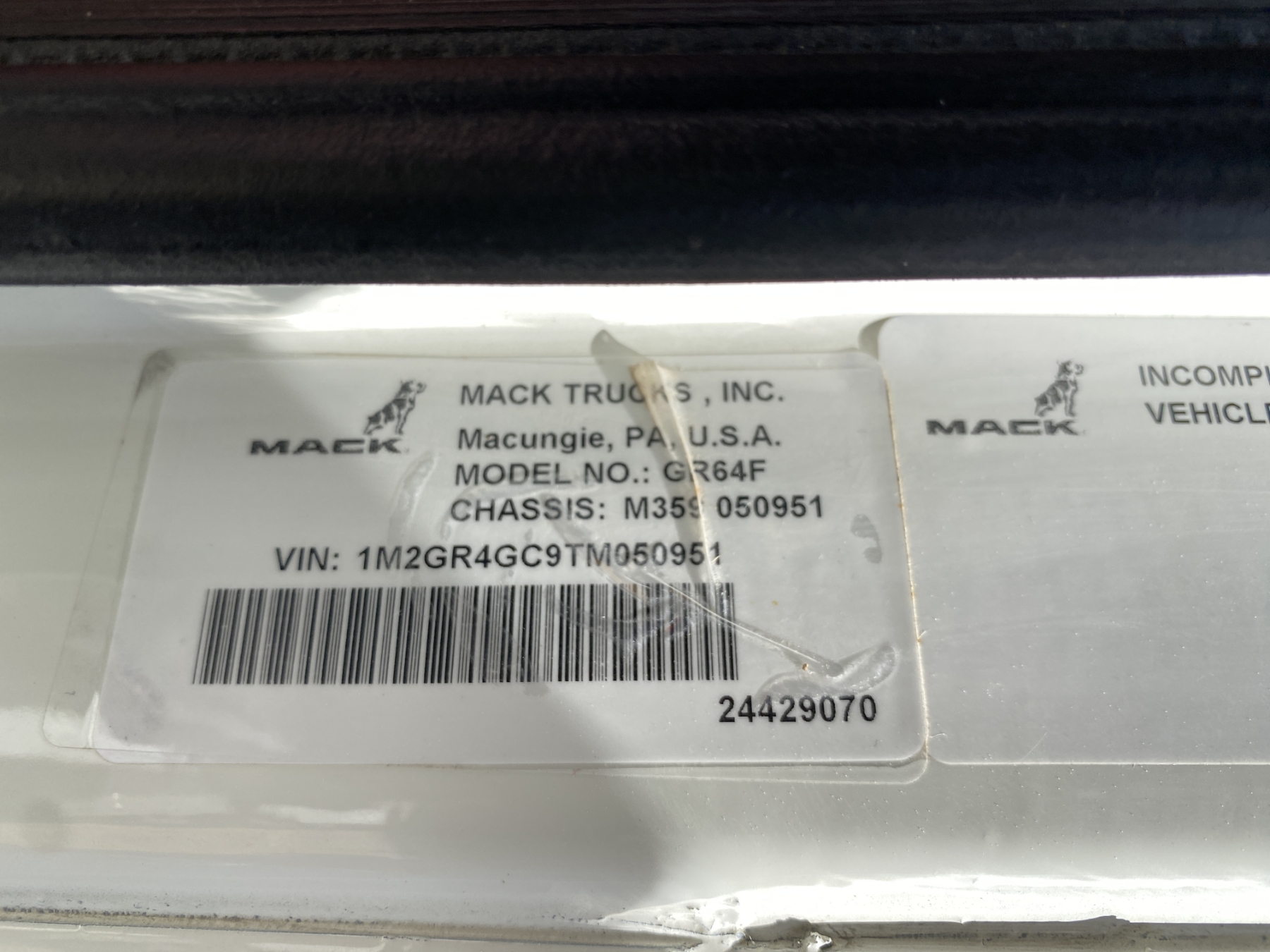 Vehicle ID Number: 1M2GR4GC9TM050951
