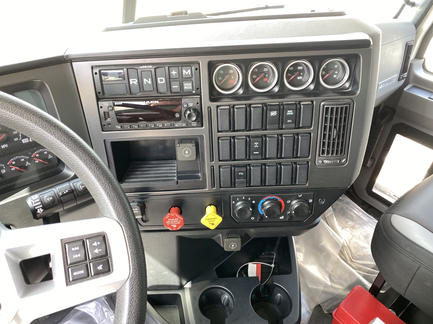 Tri Axle, 455 HP Mack MP8 engine, Mack 13 speed mDrive A/T, 44K rears, 20K front, 16' Logan body, high-lift gate, 11R24.5 rear tires, 425/65R22.5 front tires