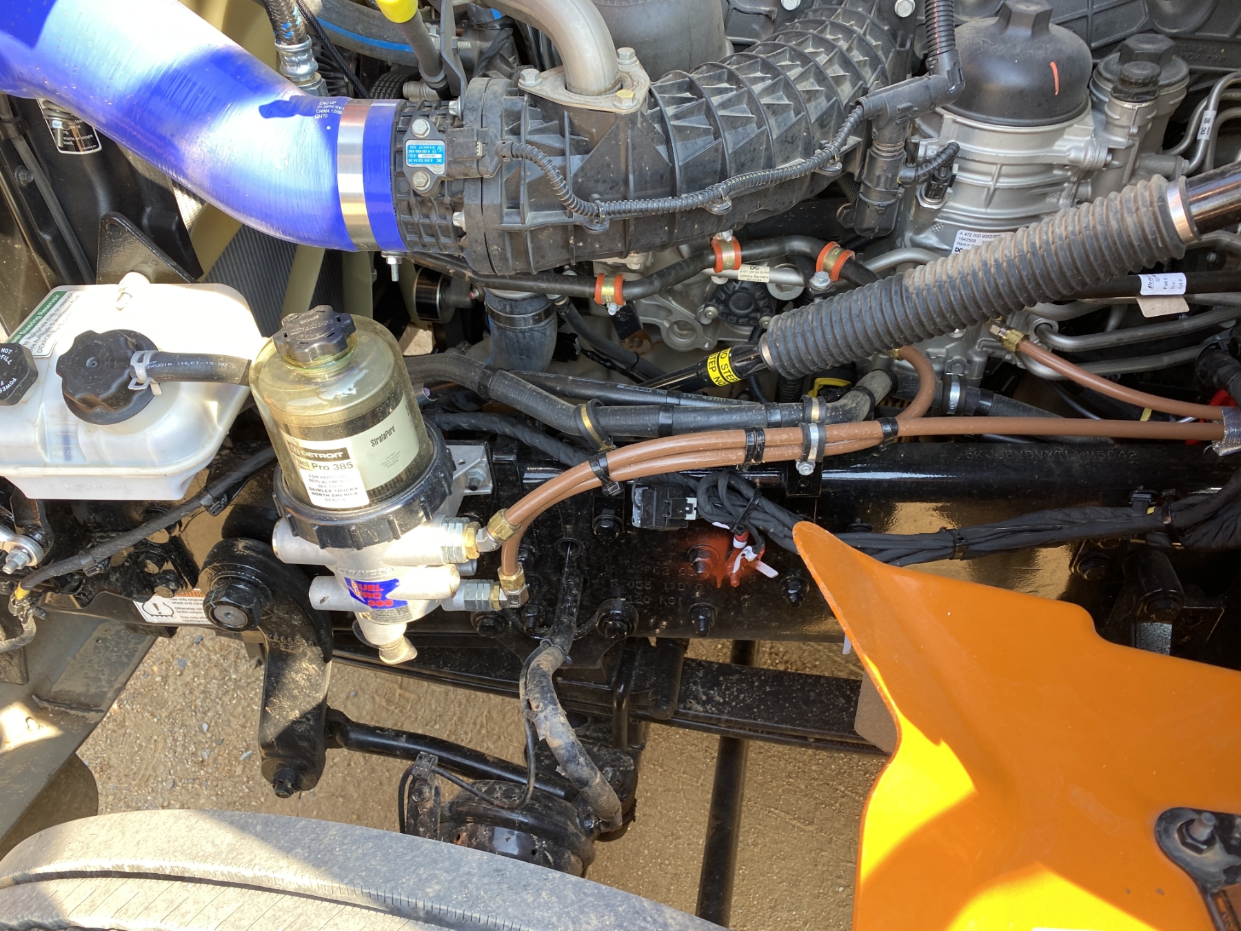 T/A, 470 HP Detroit DD13 engine, A/T, 40K rears, air ride, 13,300 lb. front, 208" W/B, alum headache rack, 11R24.5 tires, all alum (TITLE DELAY)