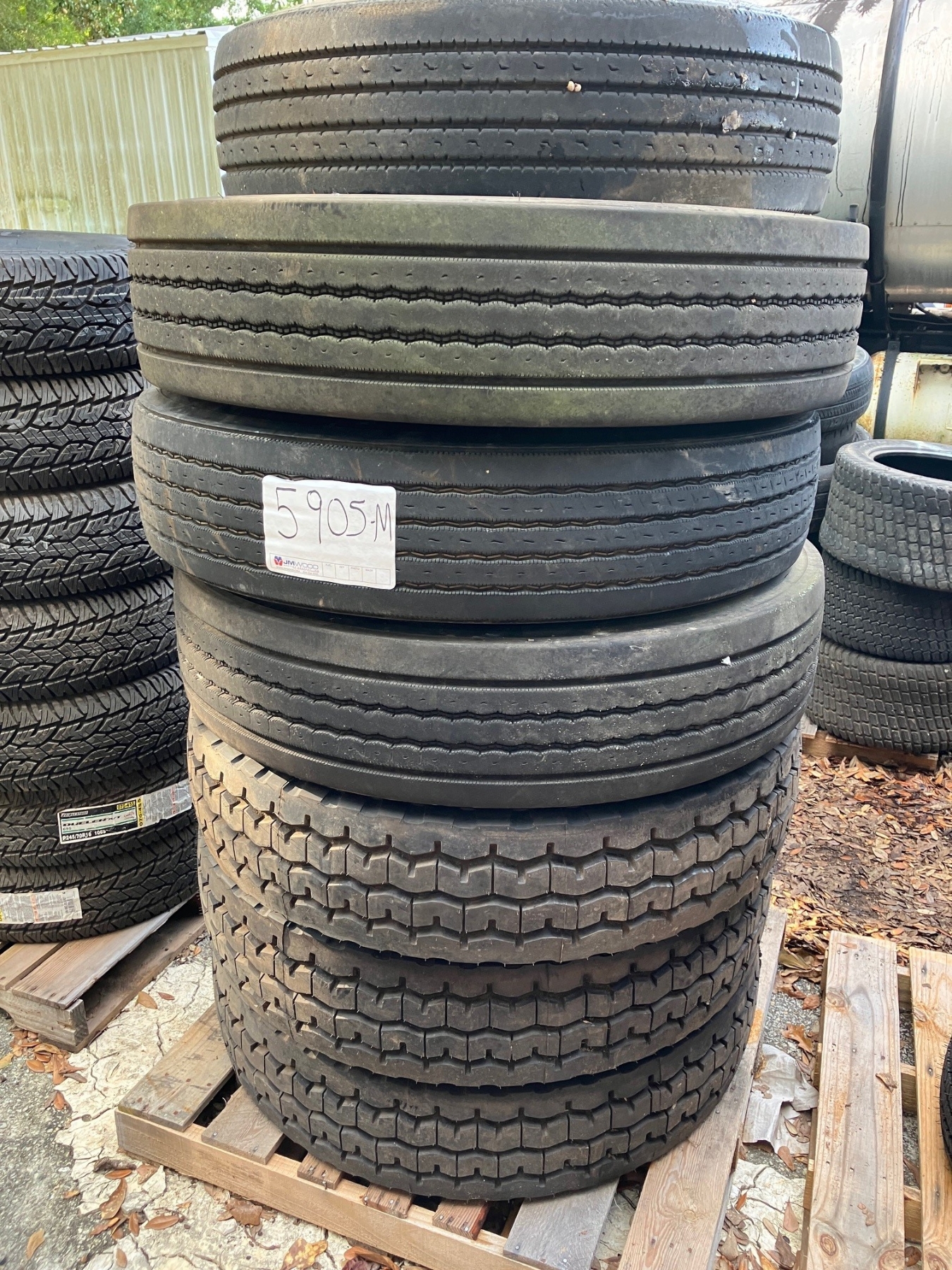 (3) 11R24.5, (1) 255/70R22.5 BRIDGESTONE, (3) 12R22.5 GOODYEAR TIRES