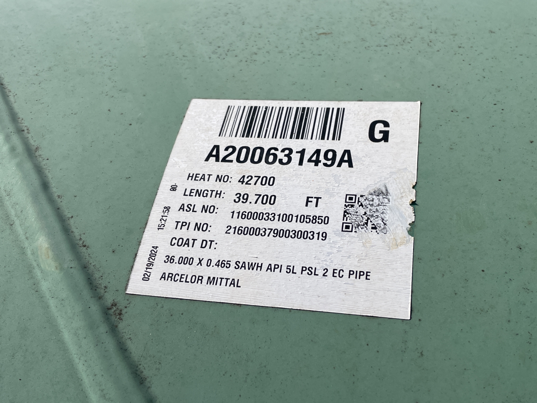 36" X 1/2" X 29' STEEL PIPE