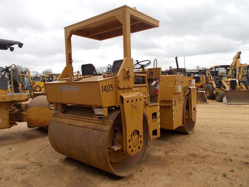 BOMAG BW12AS TANDEM VIBRATORY ROLLER, S/N 410126411, 66" SMOOTH DRUMS, WATER SYSTEM, CANOPY, METER READING 1,245 HOURS, (COUNTY OWNED)