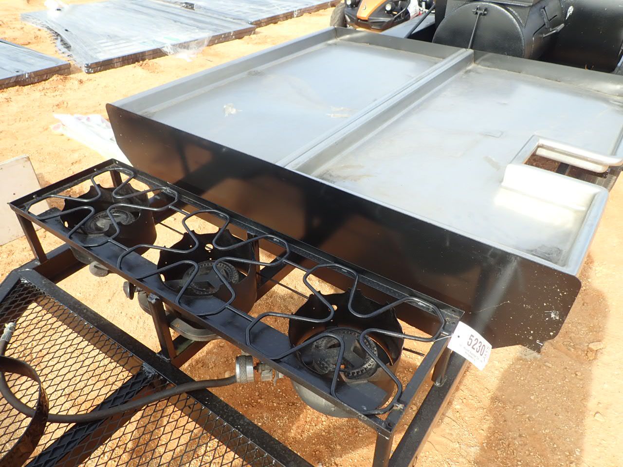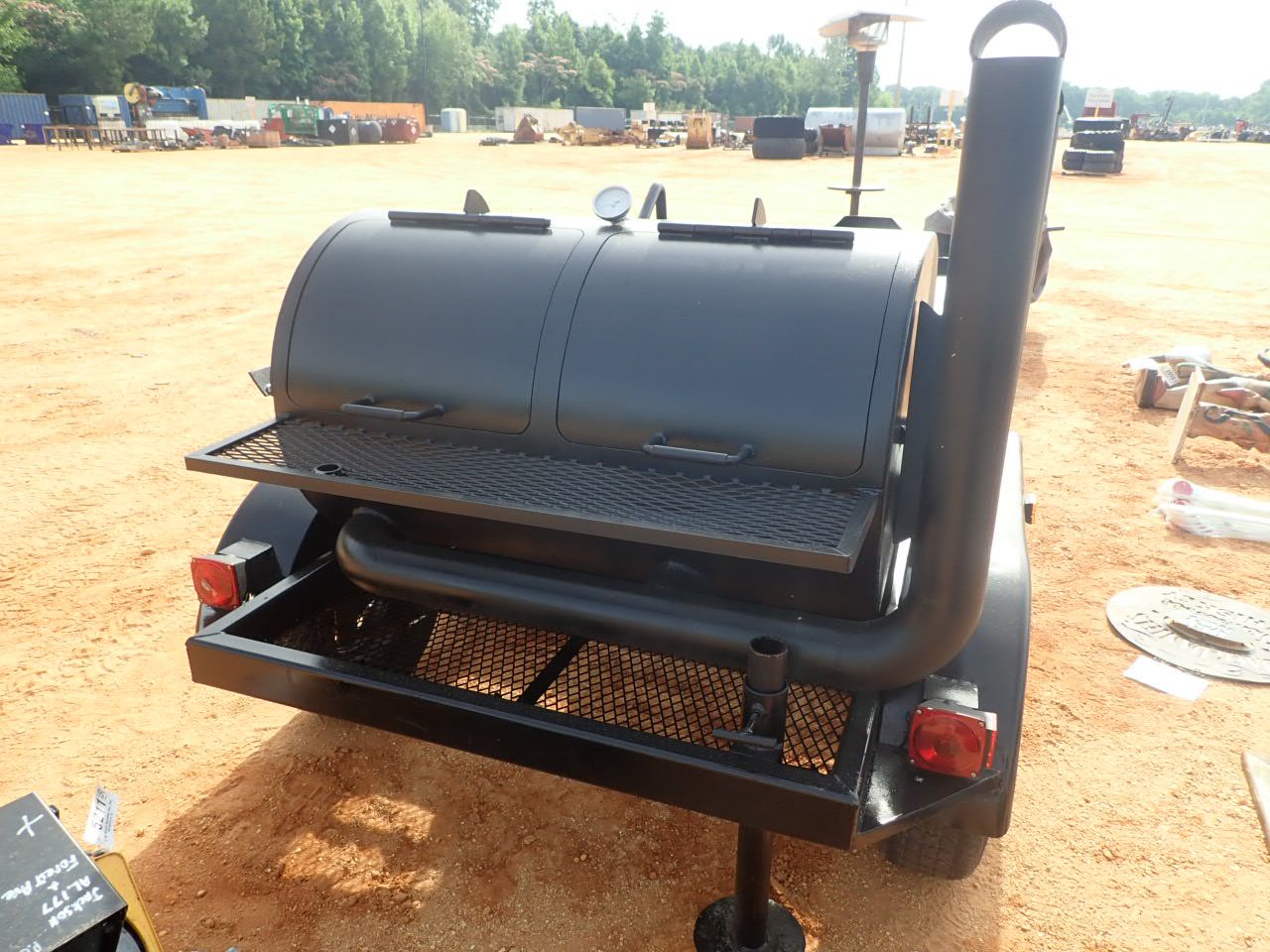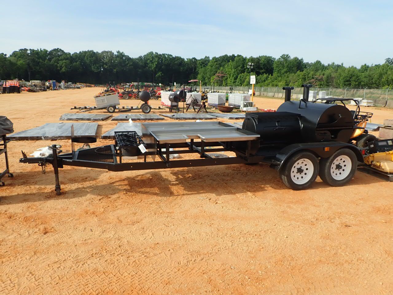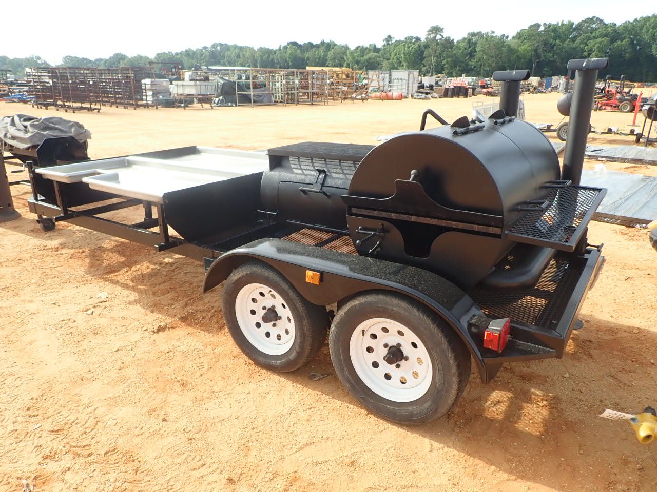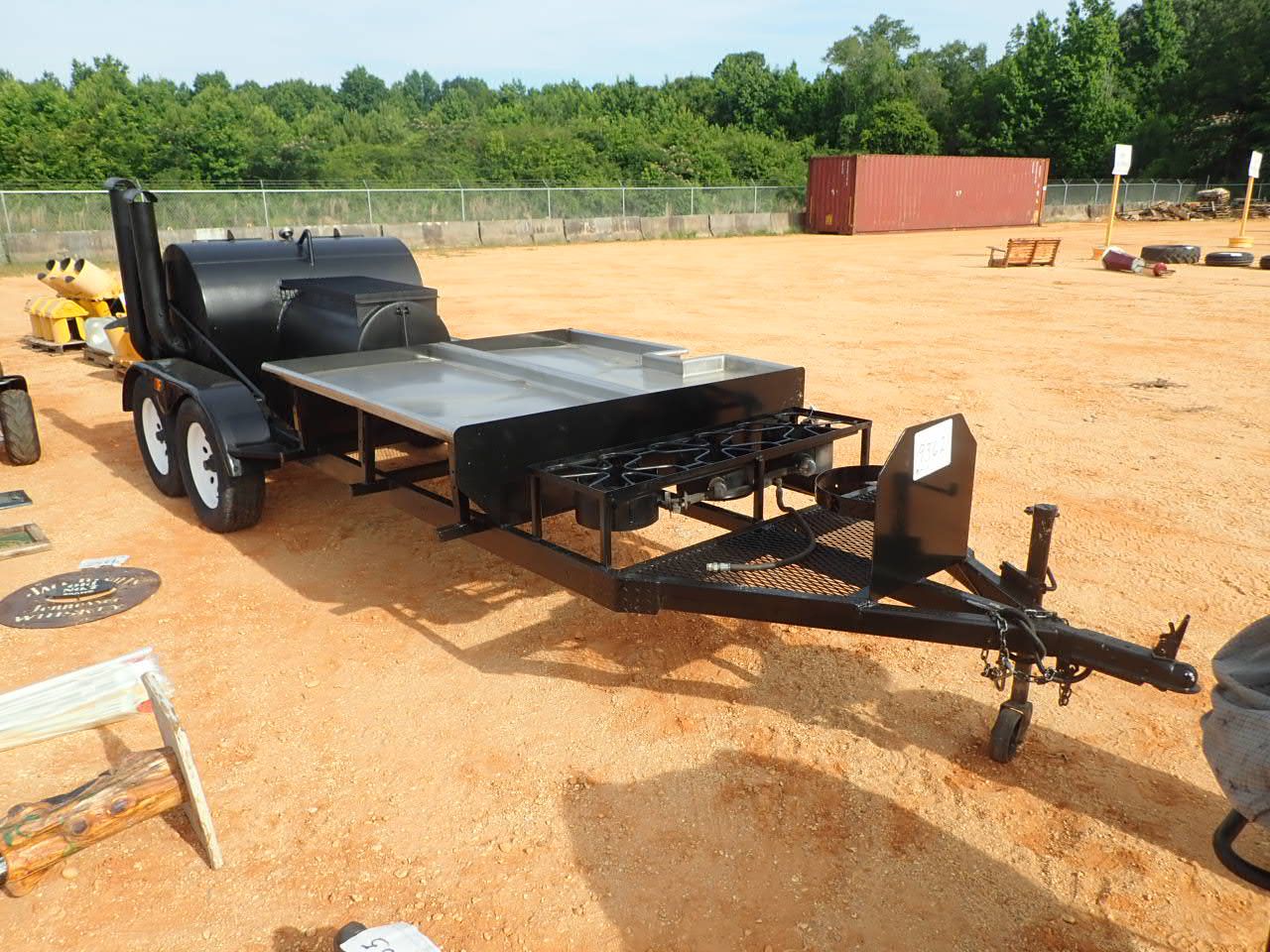 Bar-B-Que/Smoker grill, w/3 propane burners, stainless steel serving area, mtd on T/A trailer