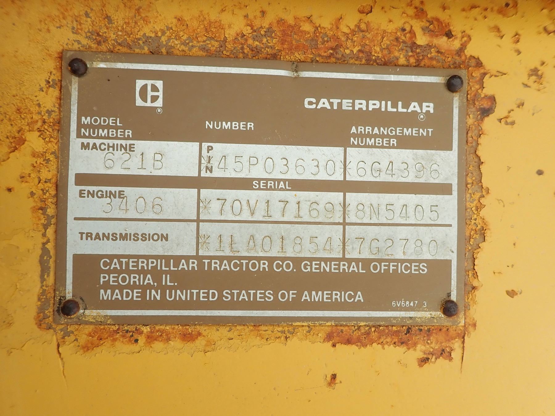 CAT 621B MOTOR SCRAPER, VIN/SN:45P03630 - CANOPY, 29.5-29 TIRES