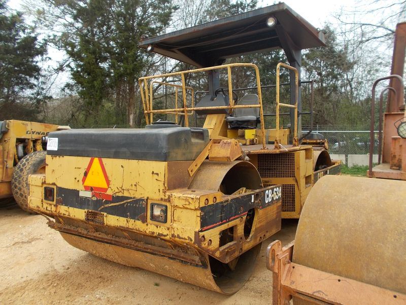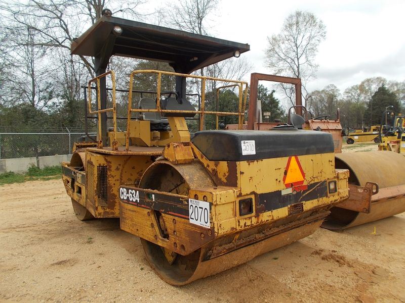 CAT CB-634 TANDEM VIBRATORY ROLLER, S/N 5CL00067, 84" SMOOTH DRUMS, WATER SYSTEM, CANOPY, METER READING 7,912 HOURS