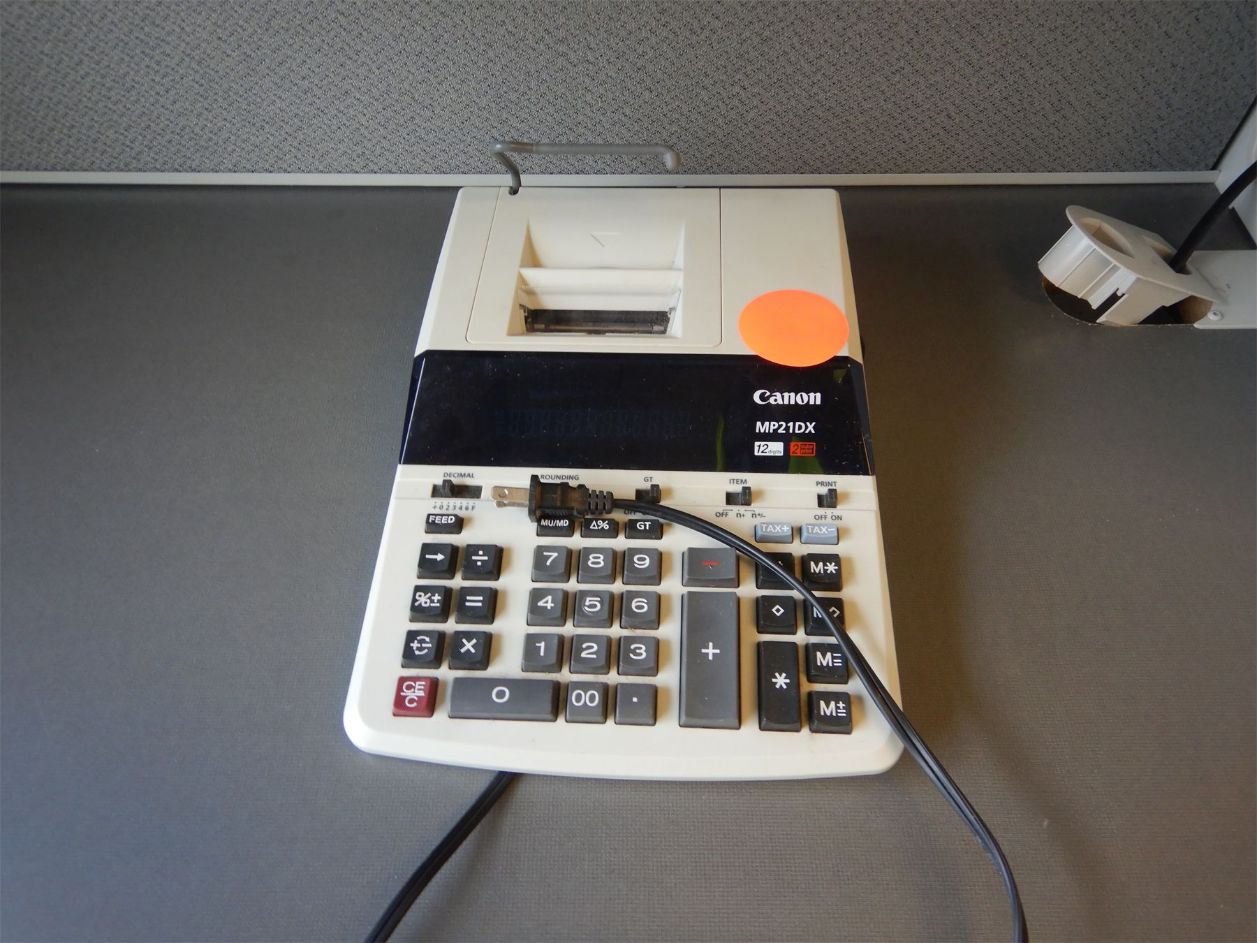 monitor, keyboard, mouse, HP Pro M402N printer, Canon electronic calculator (0-109B)