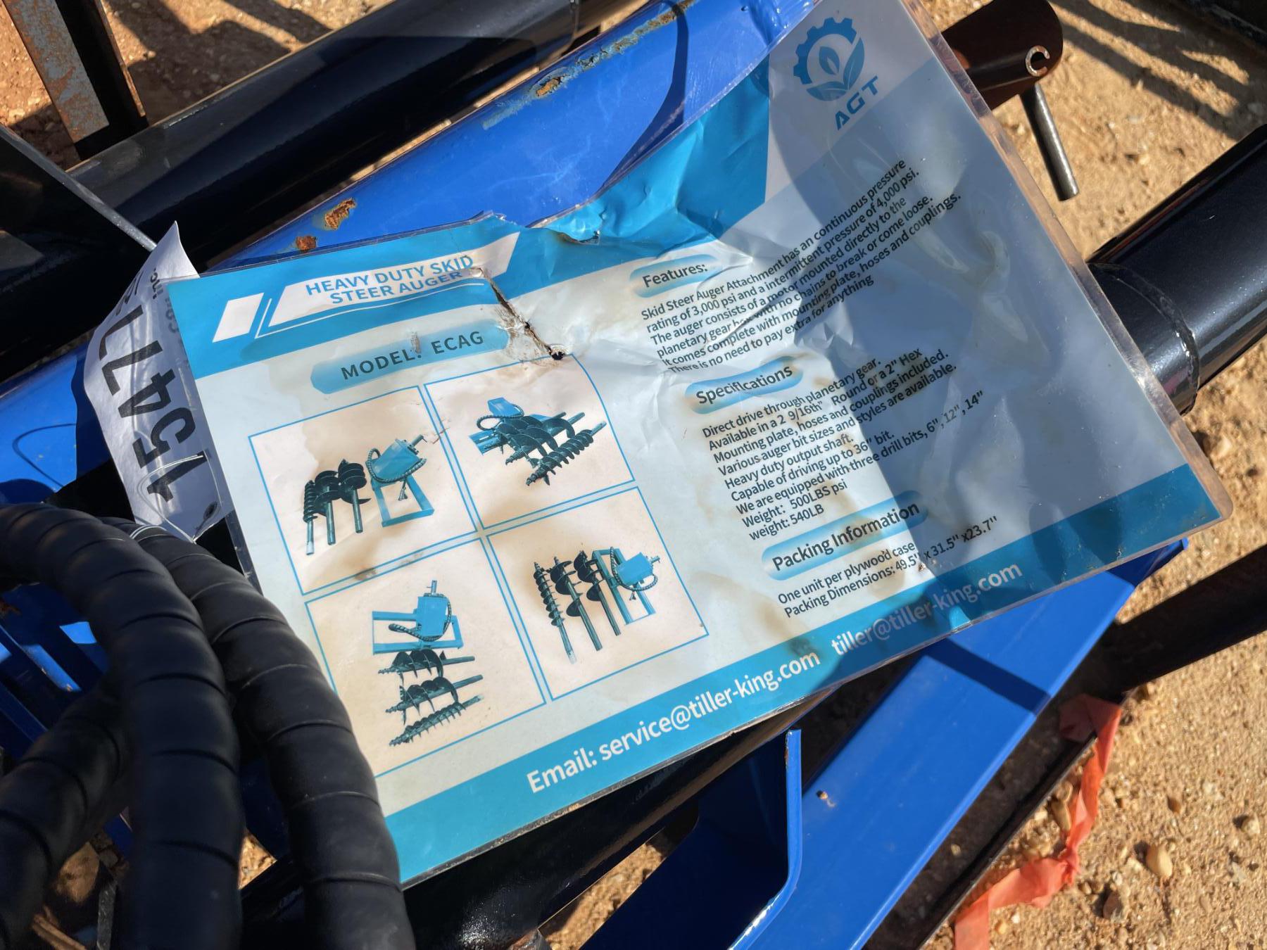 ECAG HYD AUGER W/3 BITS, 6", 12" & 14", fits skid steer loader