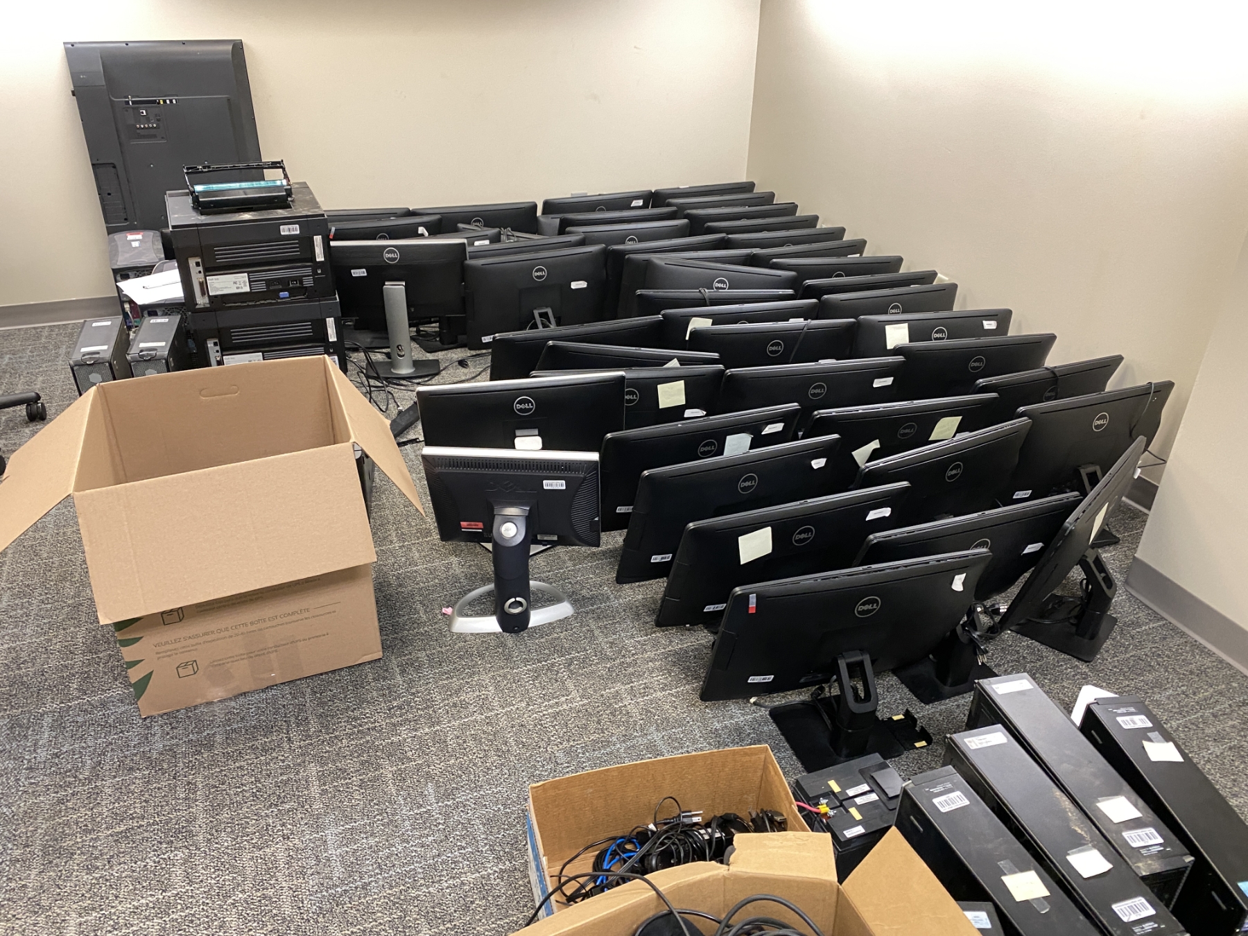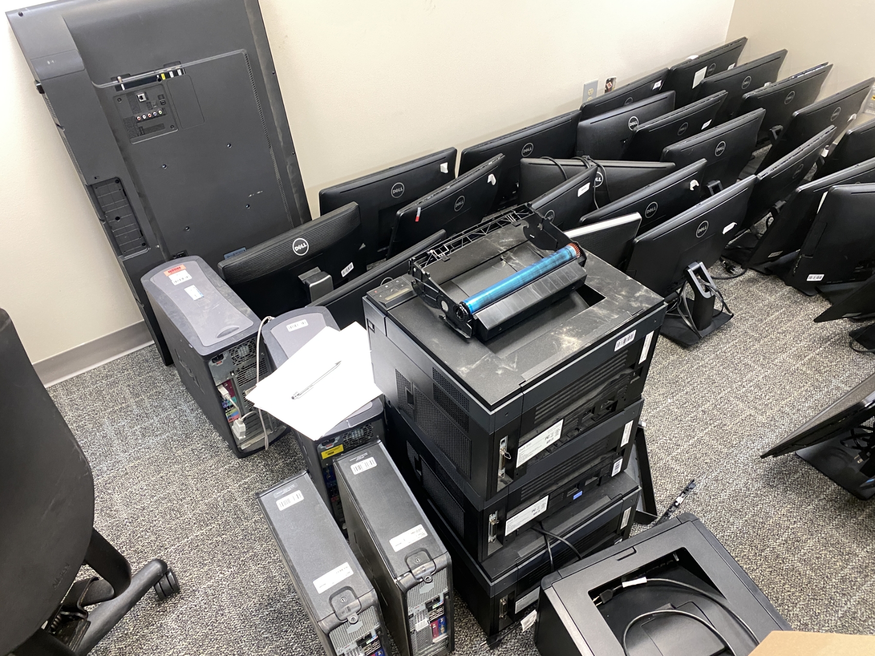 CPU's, monitors, telecom devices, printers, TV, keyboards, servers, modems, amplifier, storage device, telephones, switch, cables, Selling Offsite: Located in Birmingham, AL; Pre-auction inspection and post-auction loadout by appointment. Contact Cynthia Holiness at holinessc@pbjcal.org