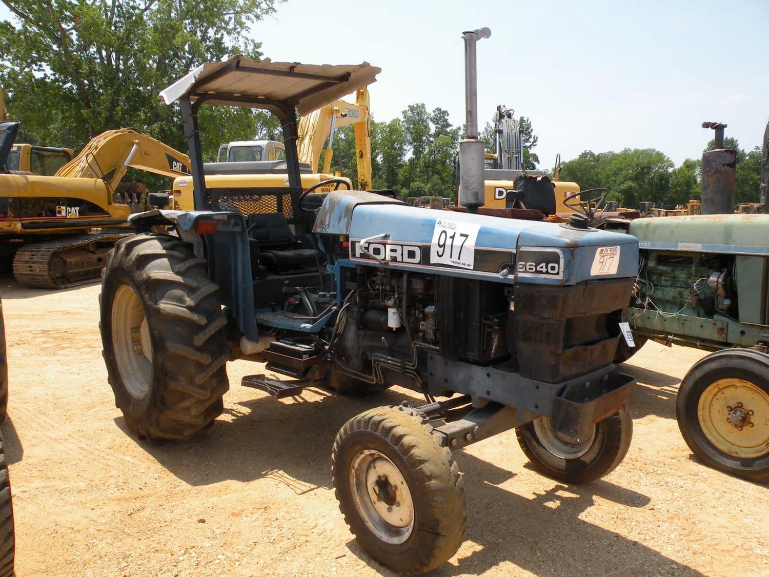 FORD 6640 FARM TRACTOR, S/N 012300B, 3 PTH, PTO, HYD REMOTE, CANOPY, METER READING 1,724 HRS (CITY OWNED)