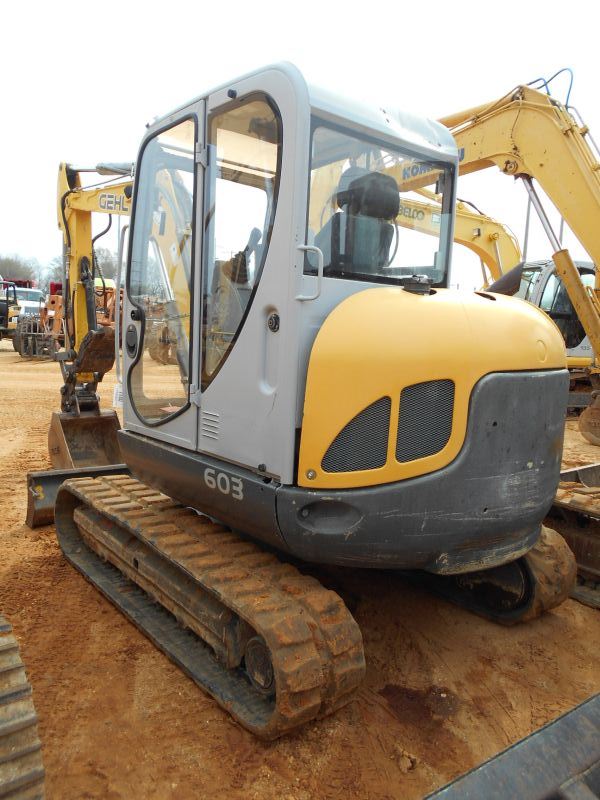 GEHL-Q6003RD HYDRAULIC EXCAVATOR, S/N AD05143, 5'6" STICK, 24" BUCKET, AUX HYDRAULICS, BACKFILL BLADE, RUBBER TRACKS, ECAB W/AIR, METER READING 2,744 HOURS