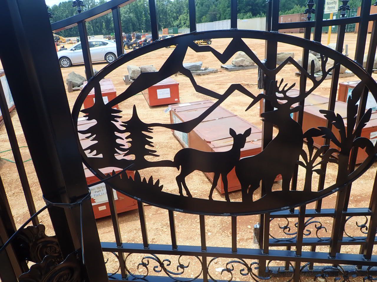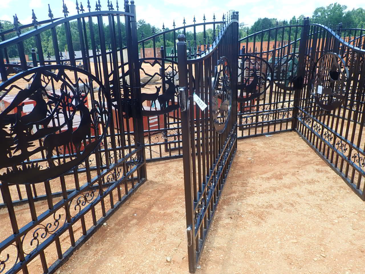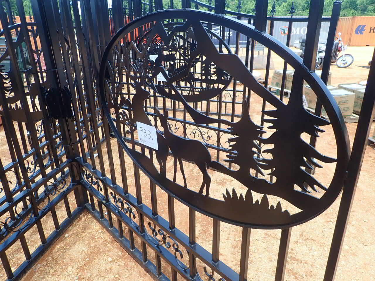 GREATBEAR 20' Wrought Iron Gate bi-parting, "deer" artwork in center frame (C-6)