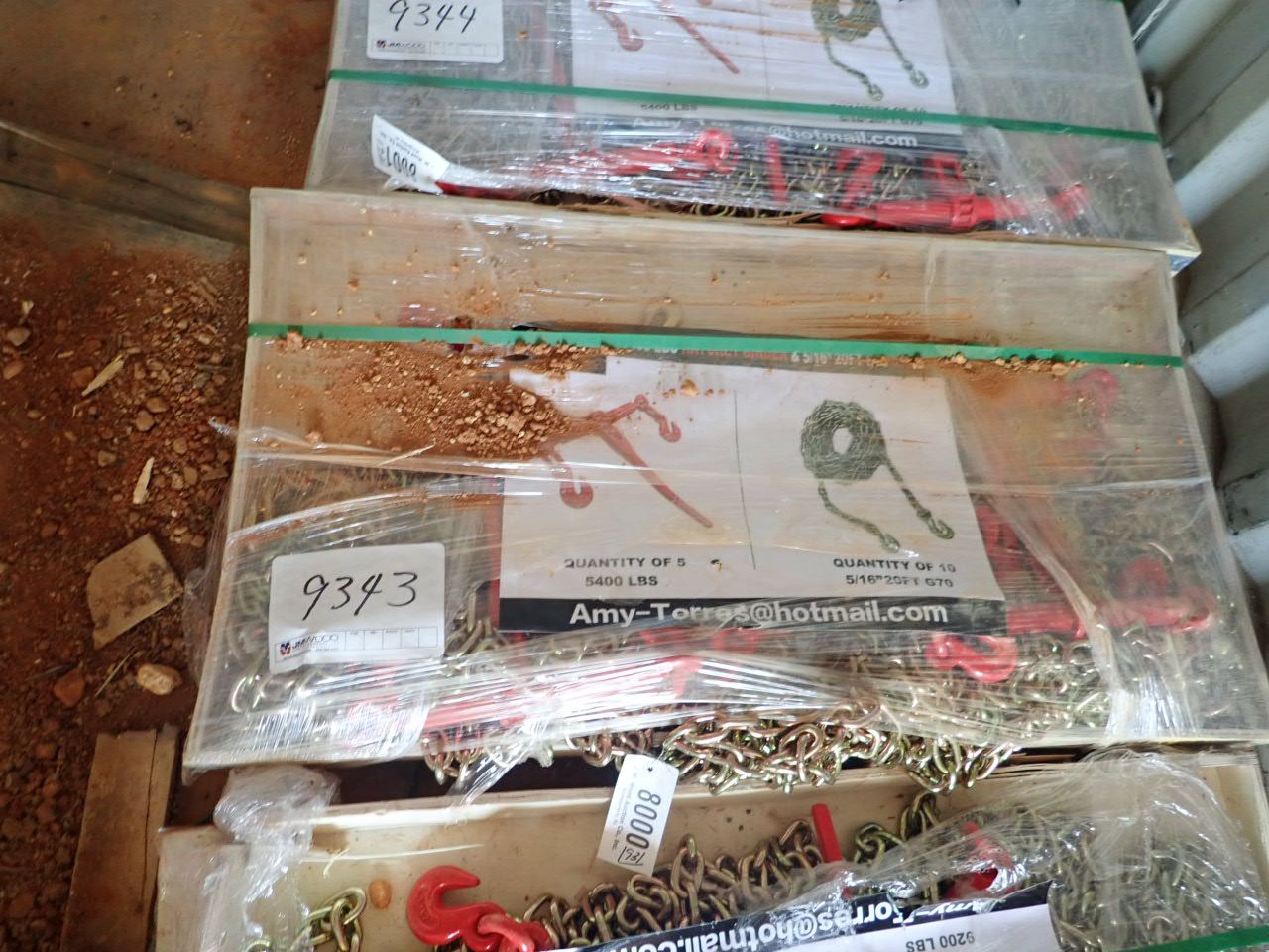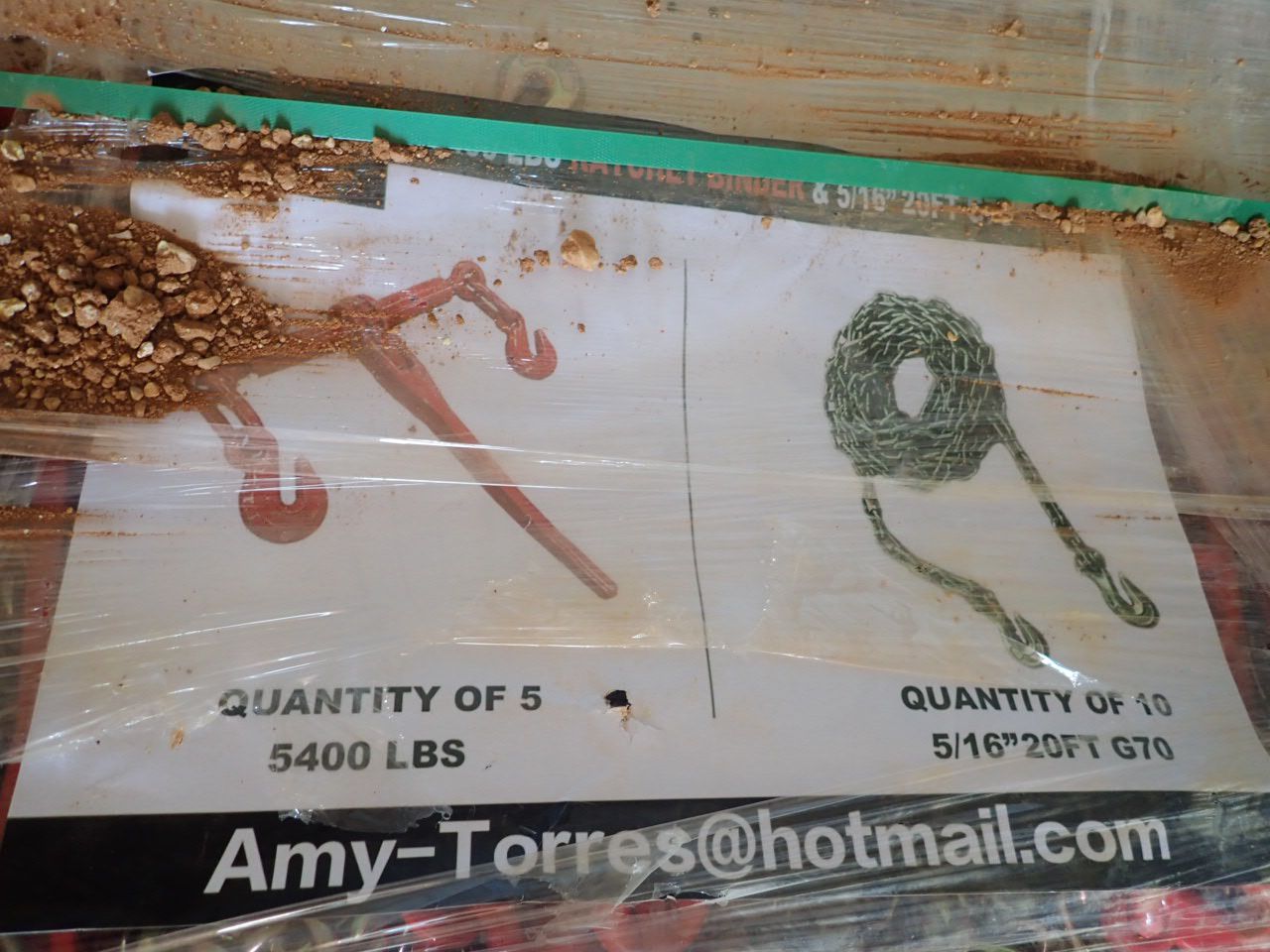 (5) 5400lb binders, (10) 5/16" 20' chains (container)