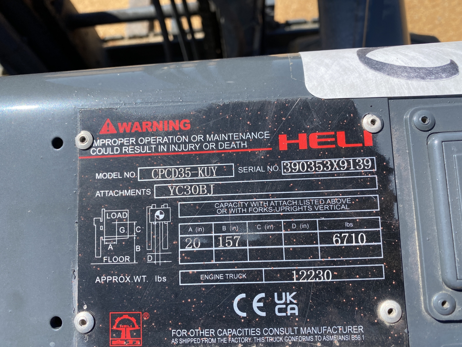 6,700 lb. capacity, 157" dual stage mast, canopy