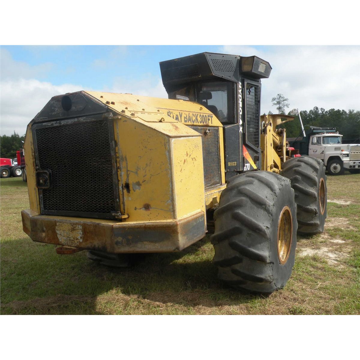 HYDRO AX670 FELLER BUNCHER, S/N 8103 (02 YR), 22" SAWHEAD, ECAB W/AC, 281-26 TIRES, METER READING 2,208 HRS