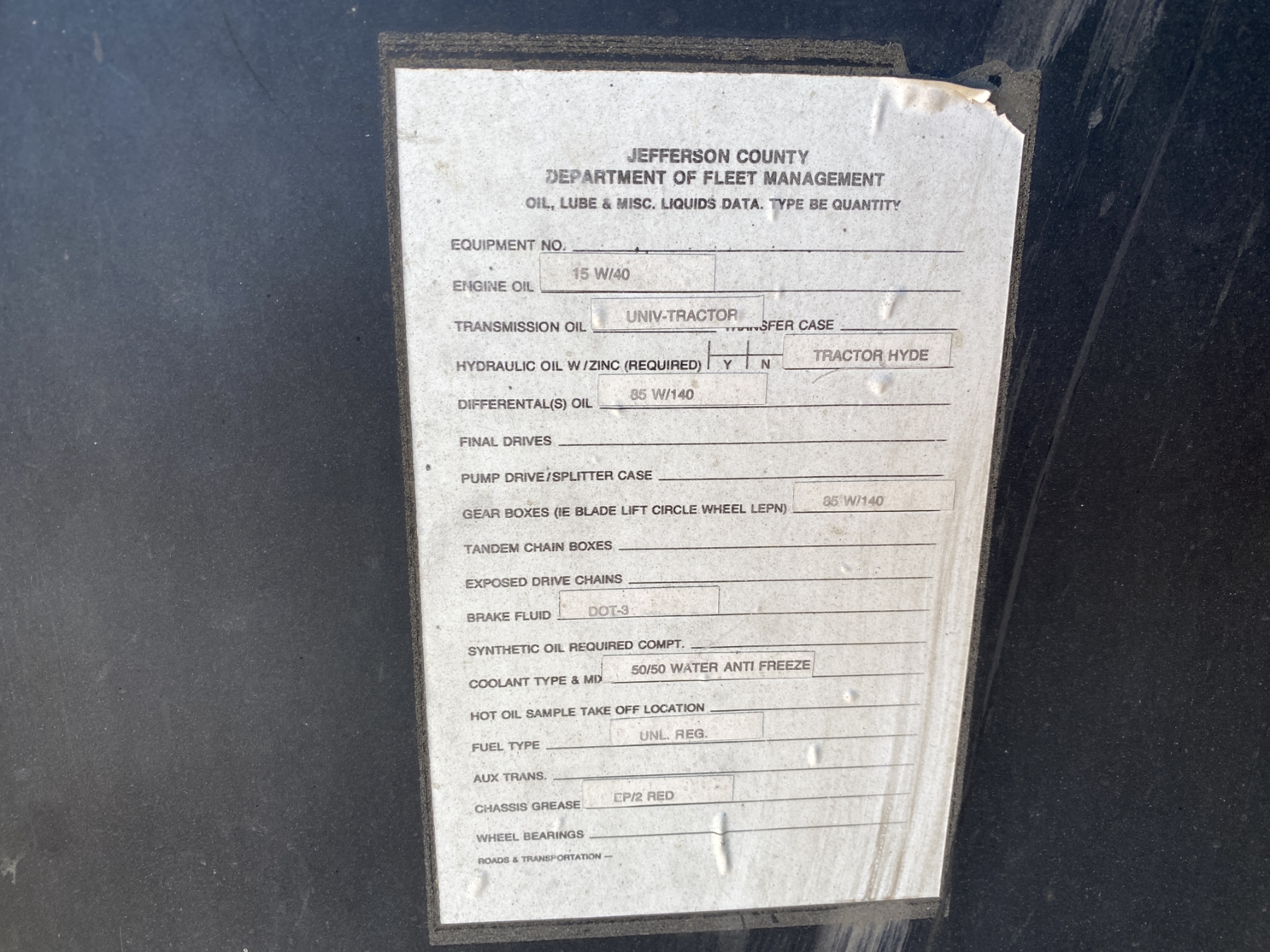 Hour Meter Reading: 2,200