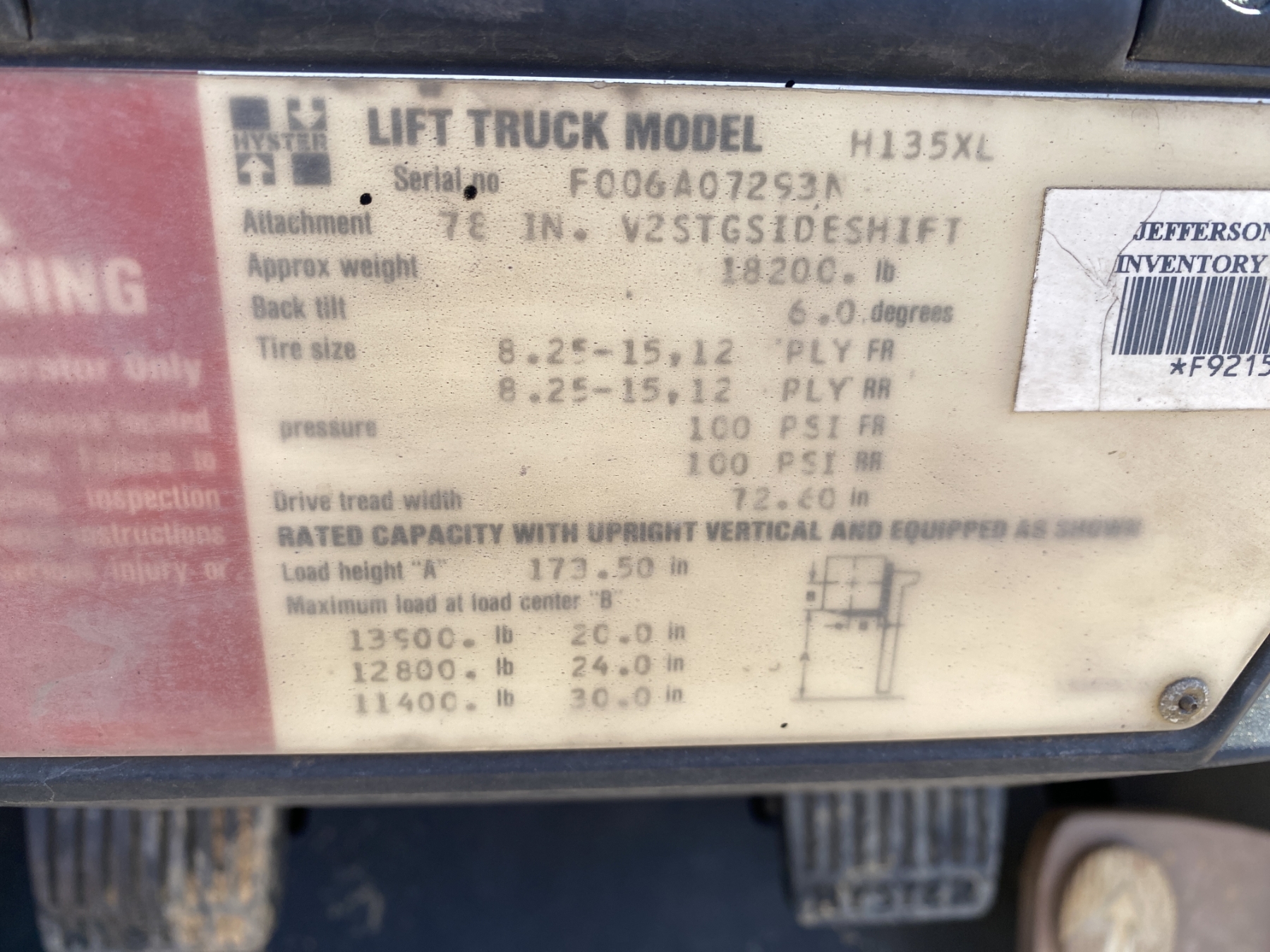 13,500 lb. capacity, 173" dual stage mast, side shift, canopy