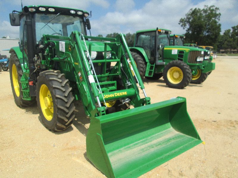 JOHN DEERE 6125R MFWD FARM TRACTOR, S/N 733940 (13 YR) 125 ENGINE HP, 102 PTO HP, JD H340 FRONT END LOADER, 24 SPEED AUTOQUAD PLUS TRANS, 3 REMOTES, 3 PTH, ECAB W/ AC, 460/85R38 TIRES, 84 HOURS