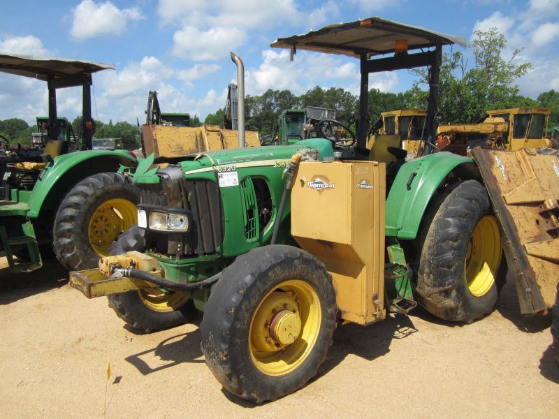 JOHN DEERE 6320 MFWD FARM TRACTOR, S/N L06320A444388 (2004) 3 PTH, PTO, 2 HYDRAULIC REMOTES, DIAMOND 6' HYDRAULIC SIDE MOUNT, CANOPY, 18.4X30 TIRES, METER READING 1,371 HRS