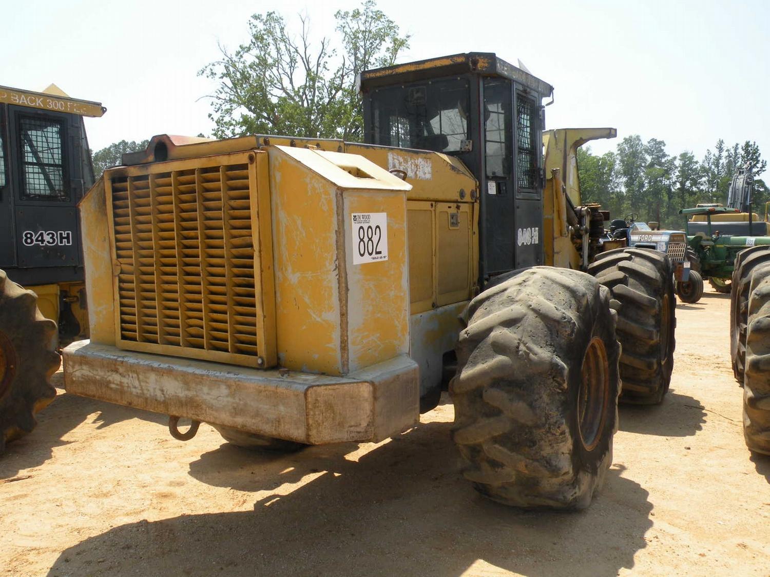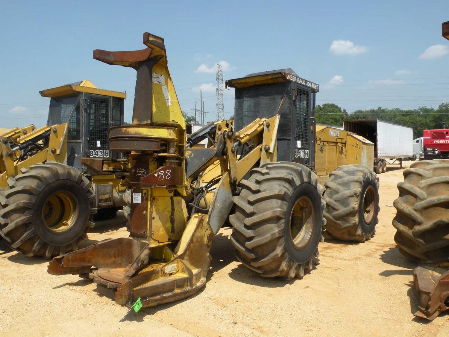 JOHN DEERE 843H FELLER BUNCHER, S/N 882012 (02 YR) TIMBERJACK FD22 SAWHEAD, ECAB W/AIR, 28L-26 TIRES, ENGINE WARRANTY UNTIL 11-30-2011