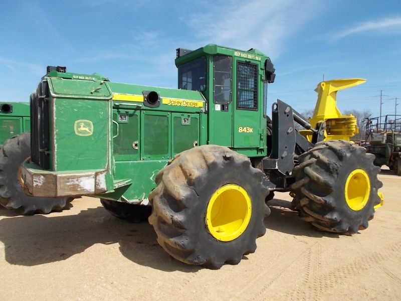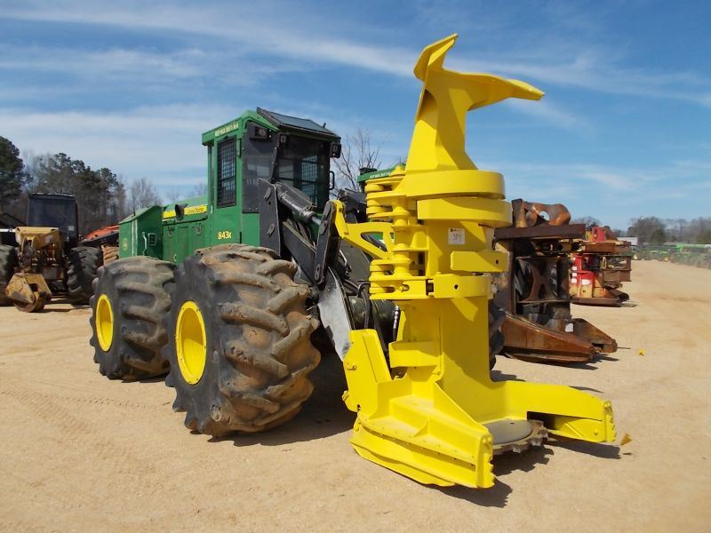 JOHN DEERE 843K FELLER BUNCHER, S/N 631188 (10 YR) JOHN DEERE FD 22B SAWHEAD, ECAB W/AIR, 67X3400X26 TIRES METER READING 6,570 HRS