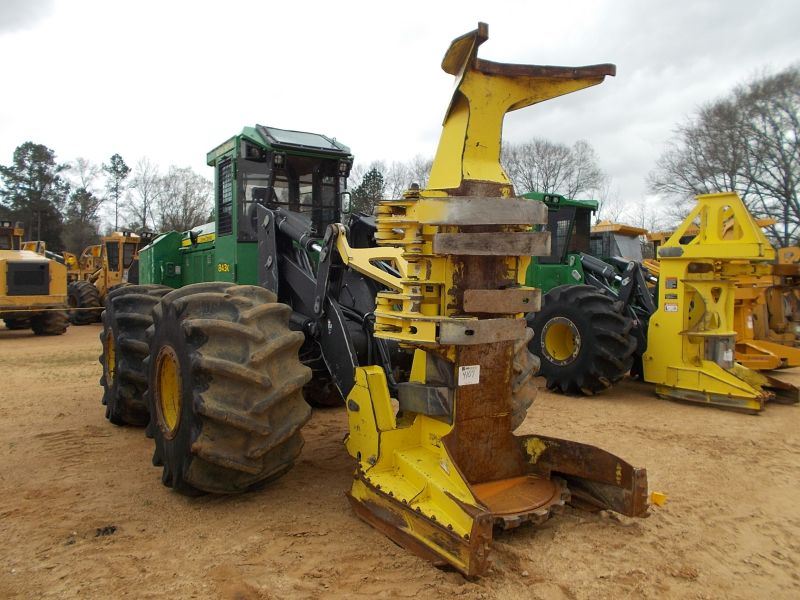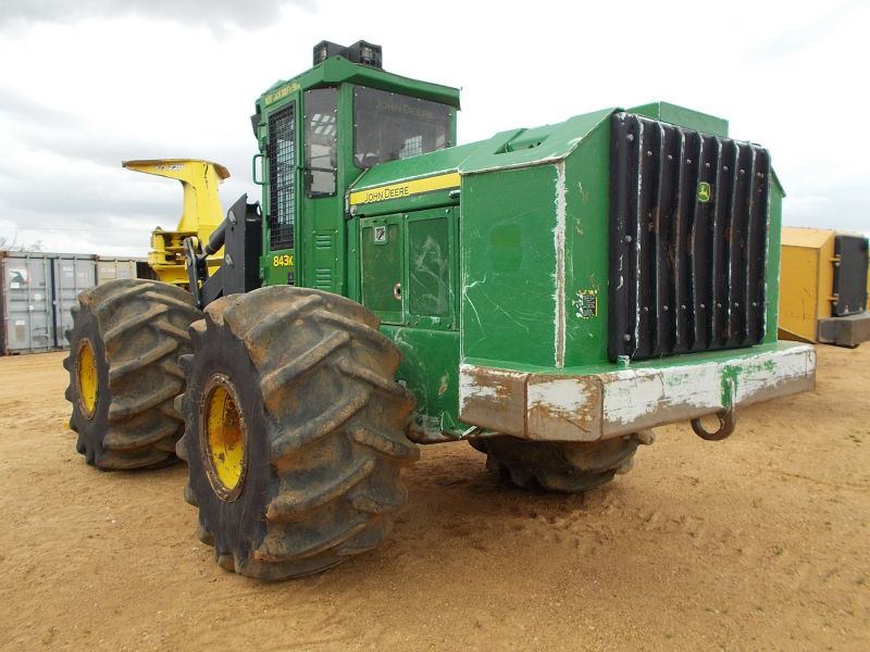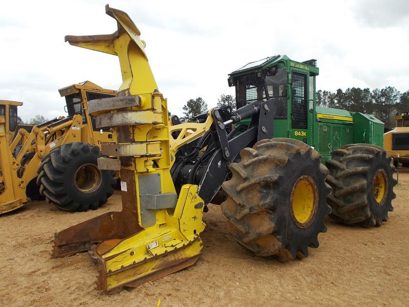 JOHN DEERE 843K FELLER BUNCHER, S/N 656523 (14 YR) JOHN DEERE FD22B SAW HEAD, ECAB W/ AIR, 67/37.00-26 TIRES, METER READING 3,452 HOURS