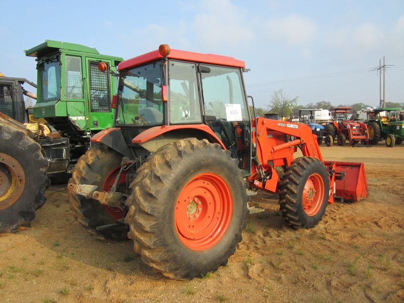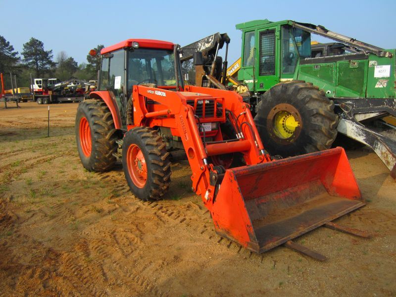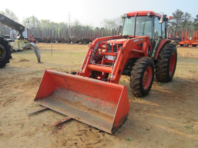 KUBOTA M9000 MFWD FARM TRACTOR, S/N 51629, KUBOTA LA1251 LOADER ATTACHMENT, GP BUCKET, ECAB W/AIR, M