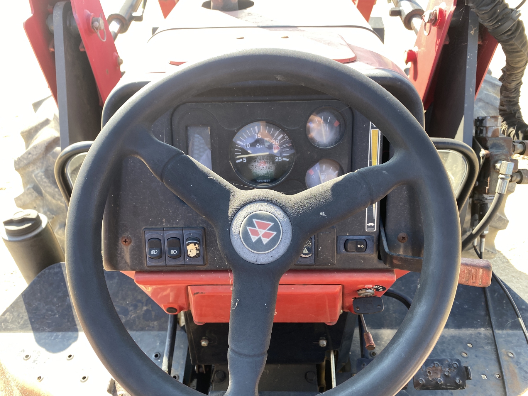MFWD, (2) remotes, Massey Ferguson DL250 front loader, bucket, roll bar (Hyd Issue)