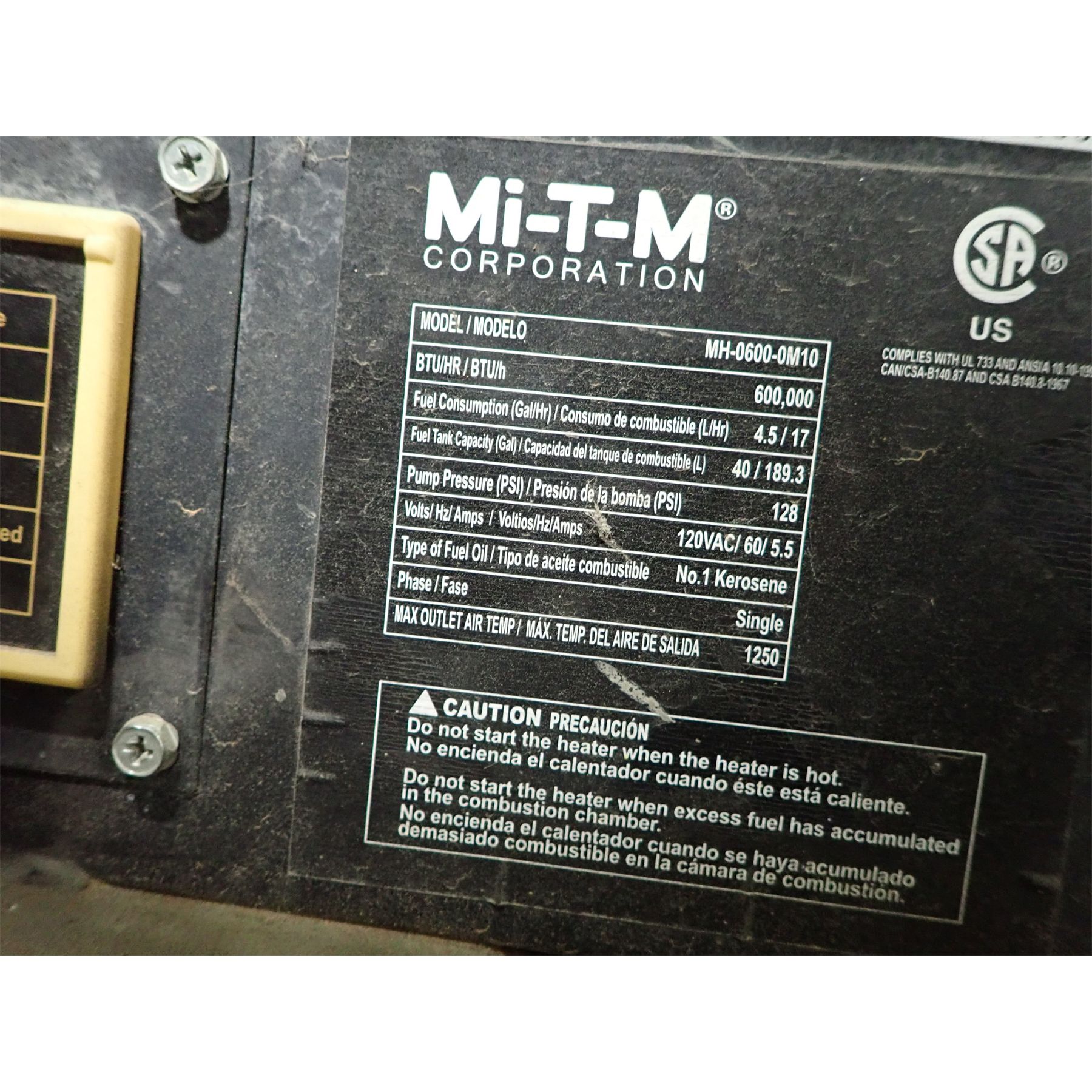 MI T M SHOP HEATER Heating / Cooling Equipment