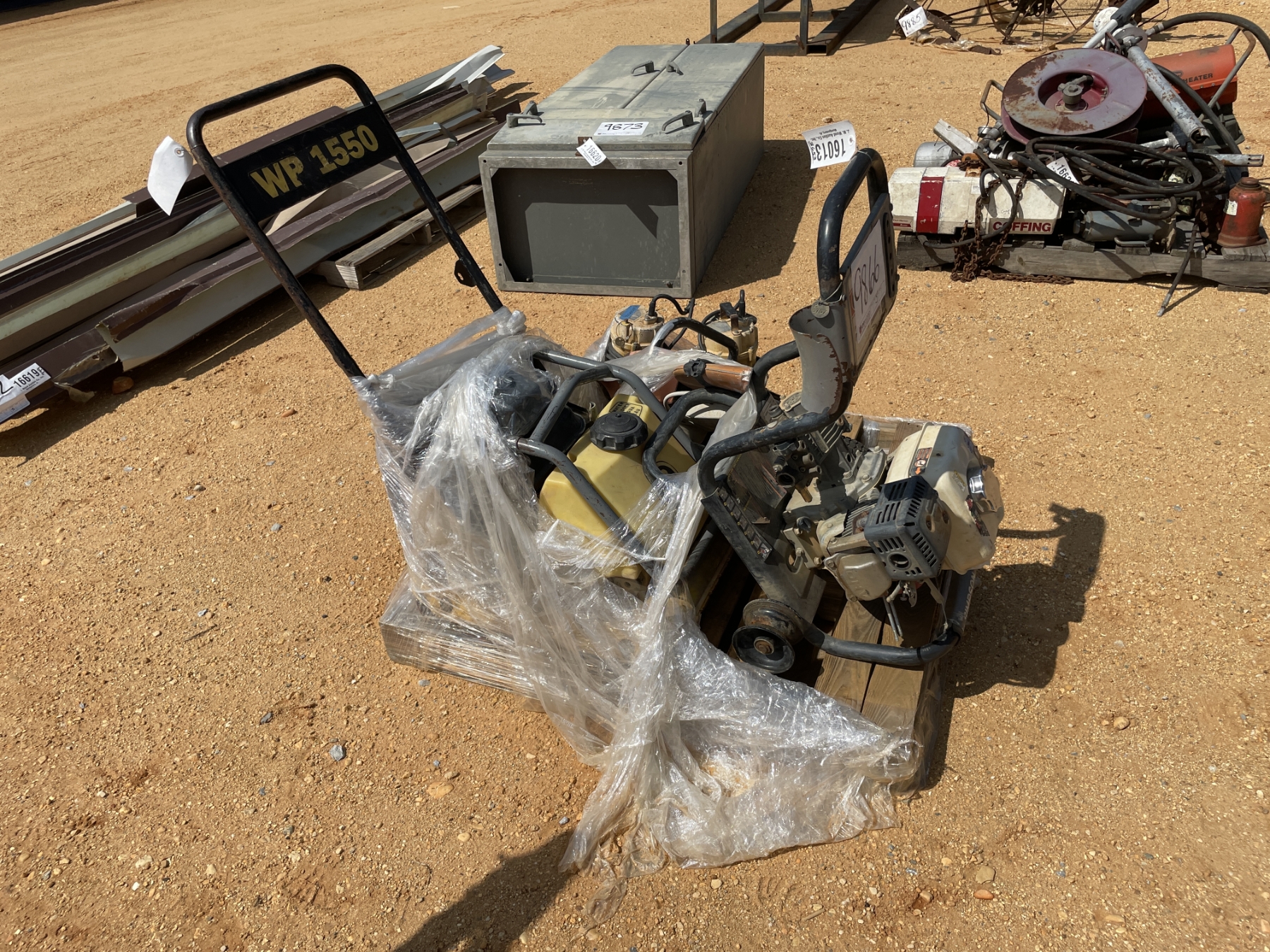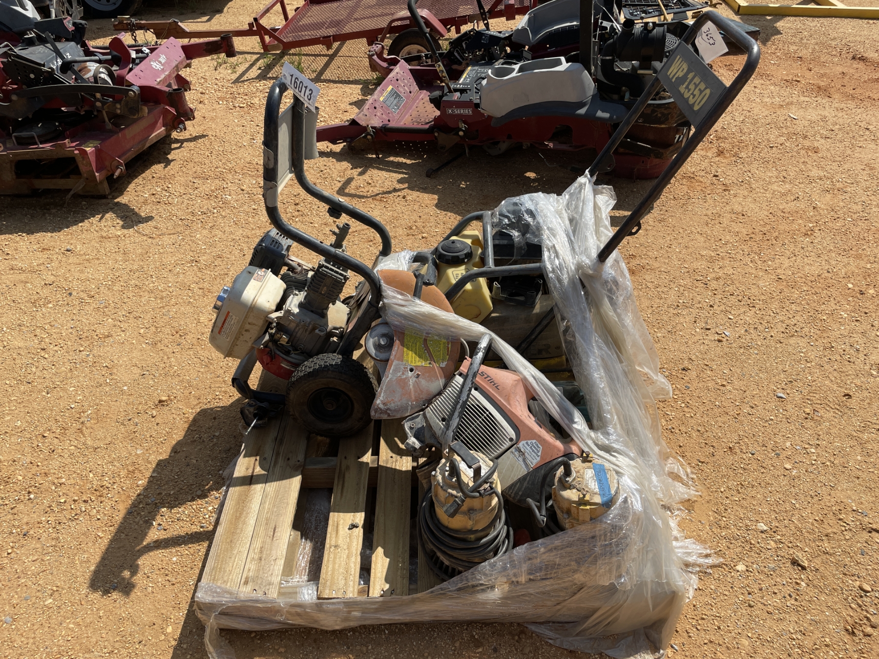 MISC PALLET OF PARTS, PLATE COMPACTOR PARTS, PRESSURE WASHER PARTS, STIHL PARTS, SUMP PUMP PARTS