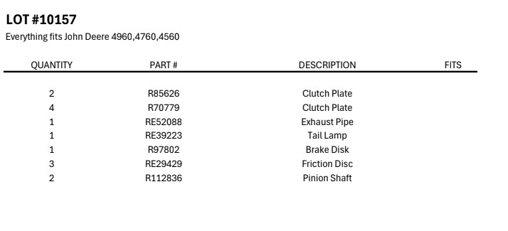 (NEW/UNUSED) JOHN DEERE AG PARTS