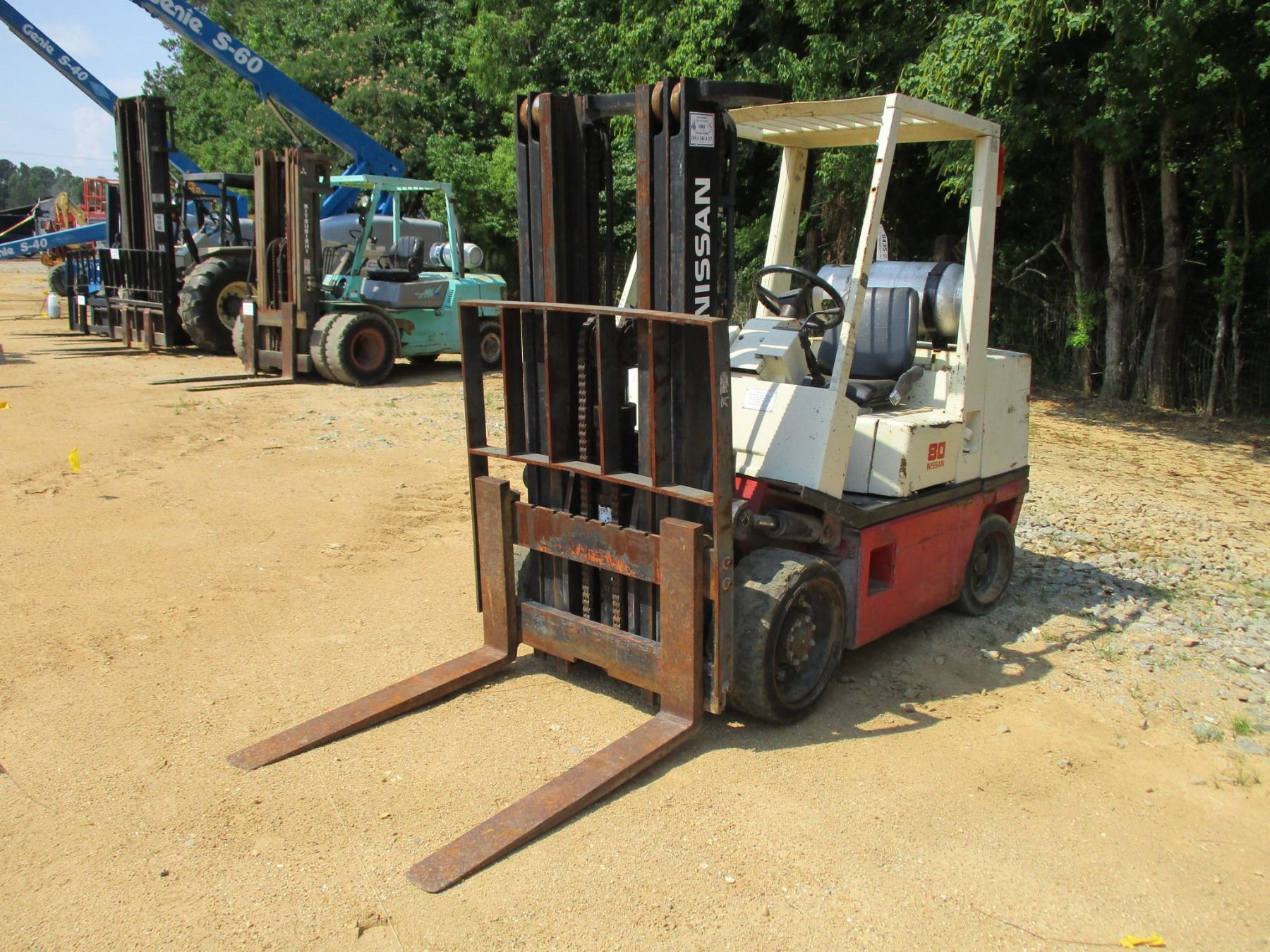 NISSAN CRGH02F35V FORKLIFT, VIN/SN:920157 - 7,750# CAP, TRIPLE STAGE, LP GAS, METER READING 9,799 HOURS