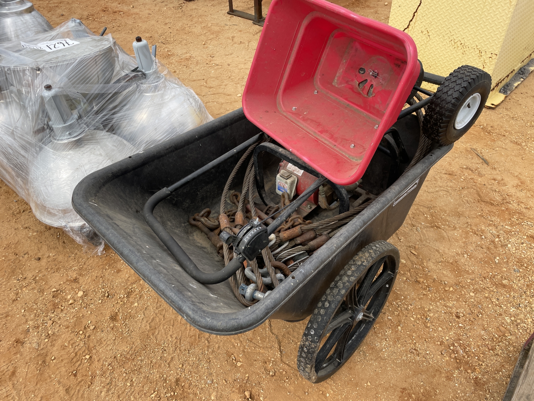 RUBBERMAID WHEEL BARROW & MISC. ITEMS