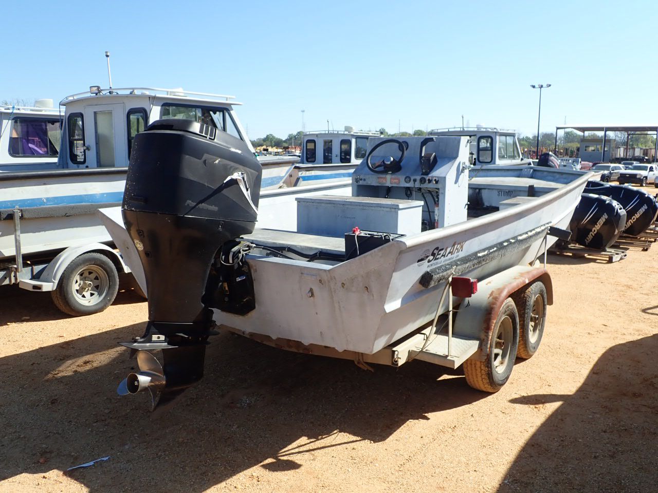 SEA ARK CENTER CONSOLE, 18'L, MERCURY 75HP OUTBOARD, INCLUDES ROYAL BOAT TRAILER, TANDEM AXLE HULL#J