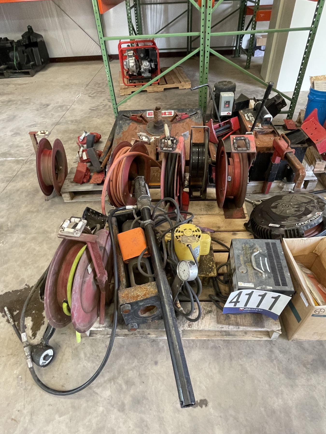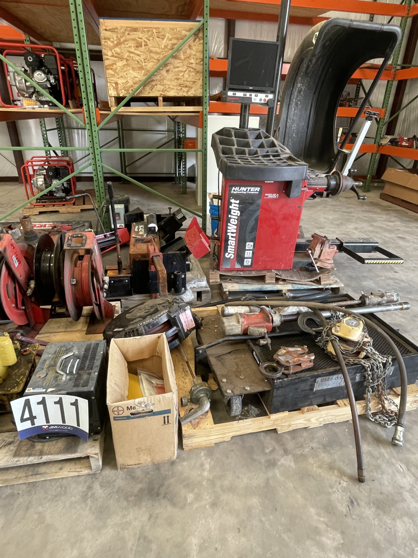 wheel balance machine, grease gun, hose reels, lifting clamp, chain hoist, oil pumps, transfer pumps, Selling Offsite: Located in Alexander City, AL