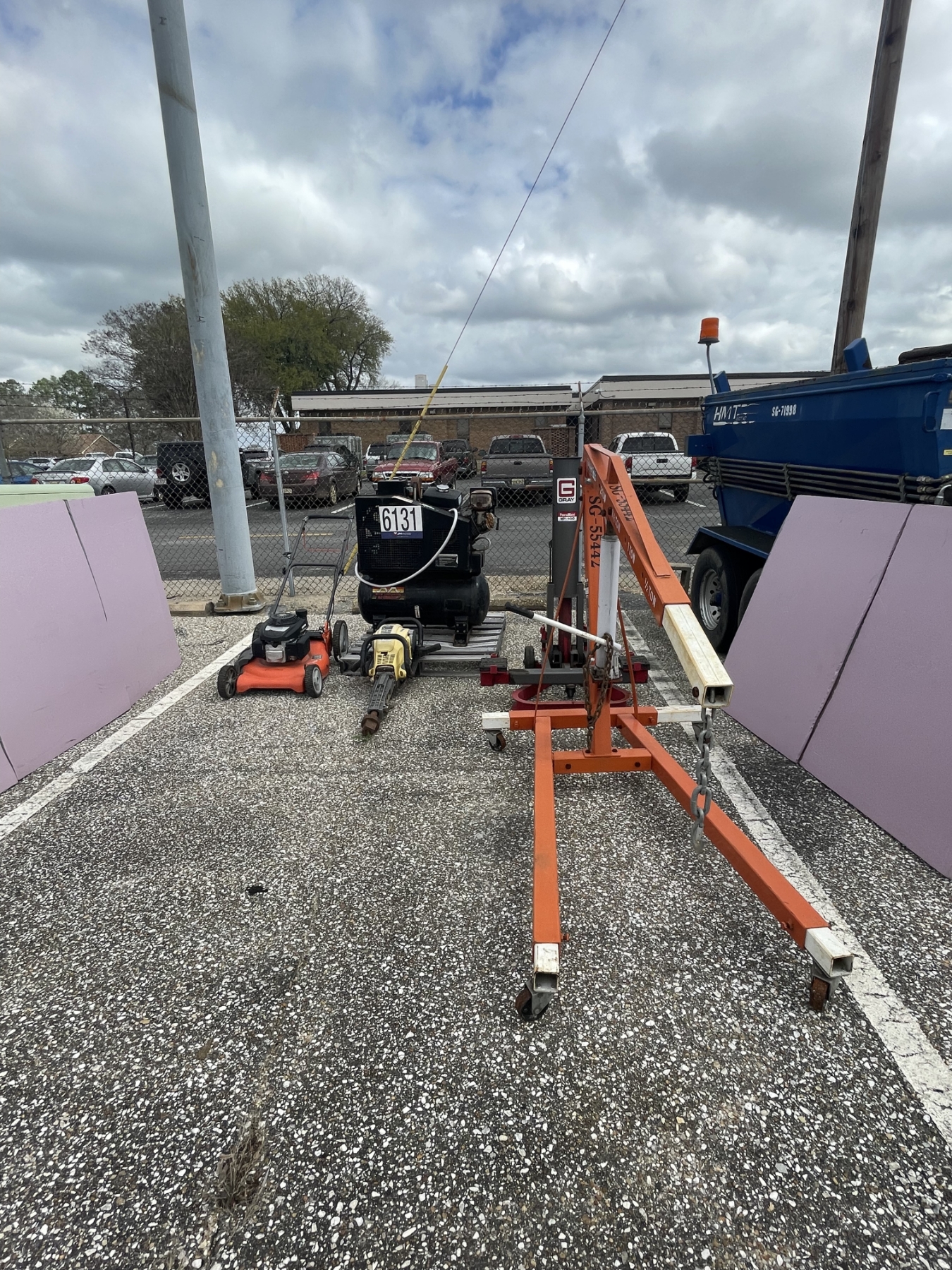 air compressor, engine hoist, push mower, post driver, air jack, Selling Offsite: Located in Montgomery, AL