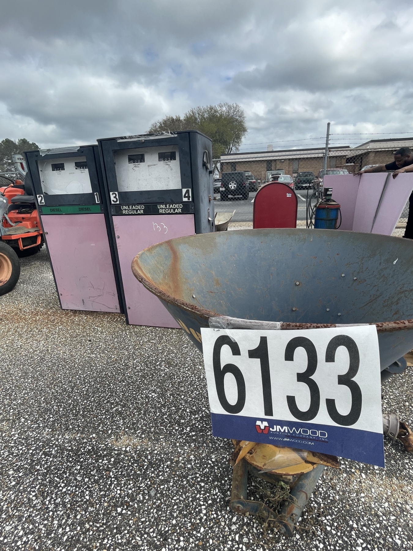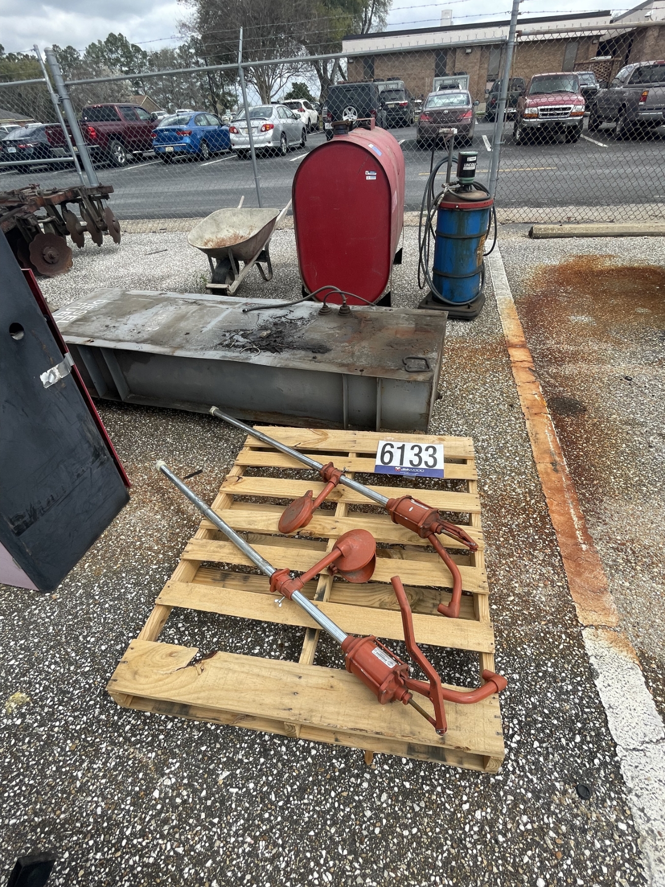 seed spreader, fuel pumps, fuel tanks, grease bbl, wheel barrow, Selling Offsite: Located in Montgomery, AL