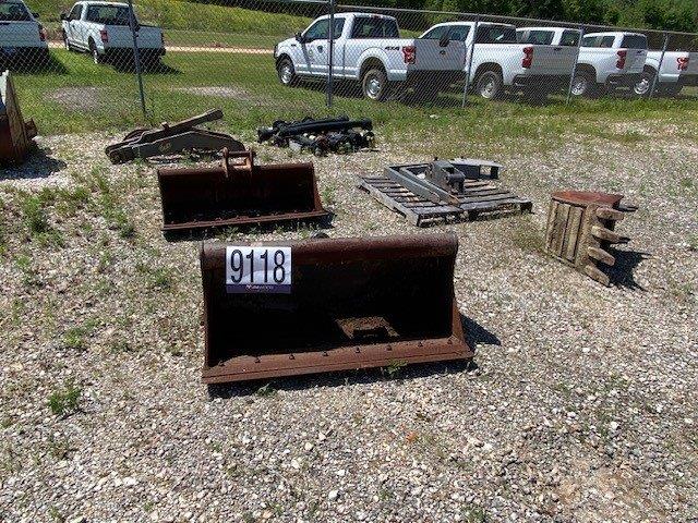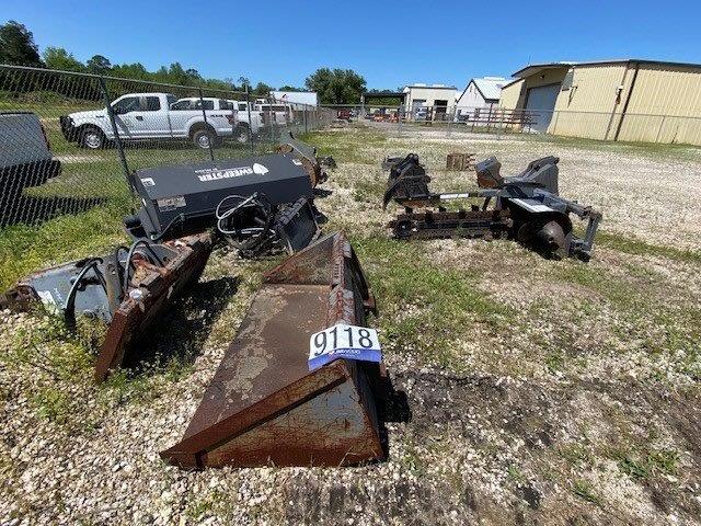 skid steer bucket, broom, trencher, hyd breaker, excavator buckets, thumbs, PTO shafts, Selling Offsite: Located in Mobile, AL