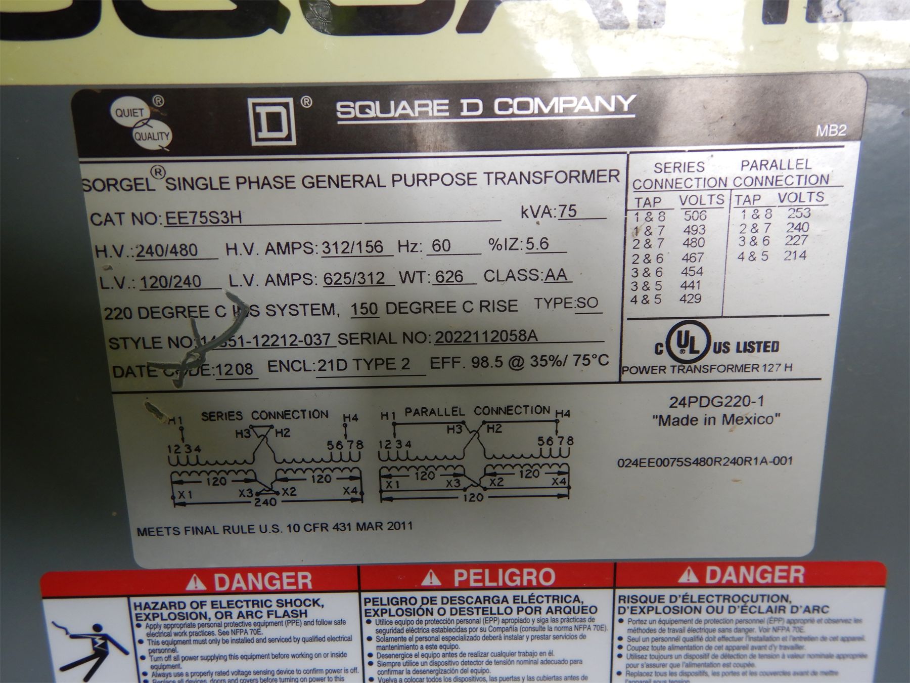 SQUARE D EE75S3H Electrical Equipment