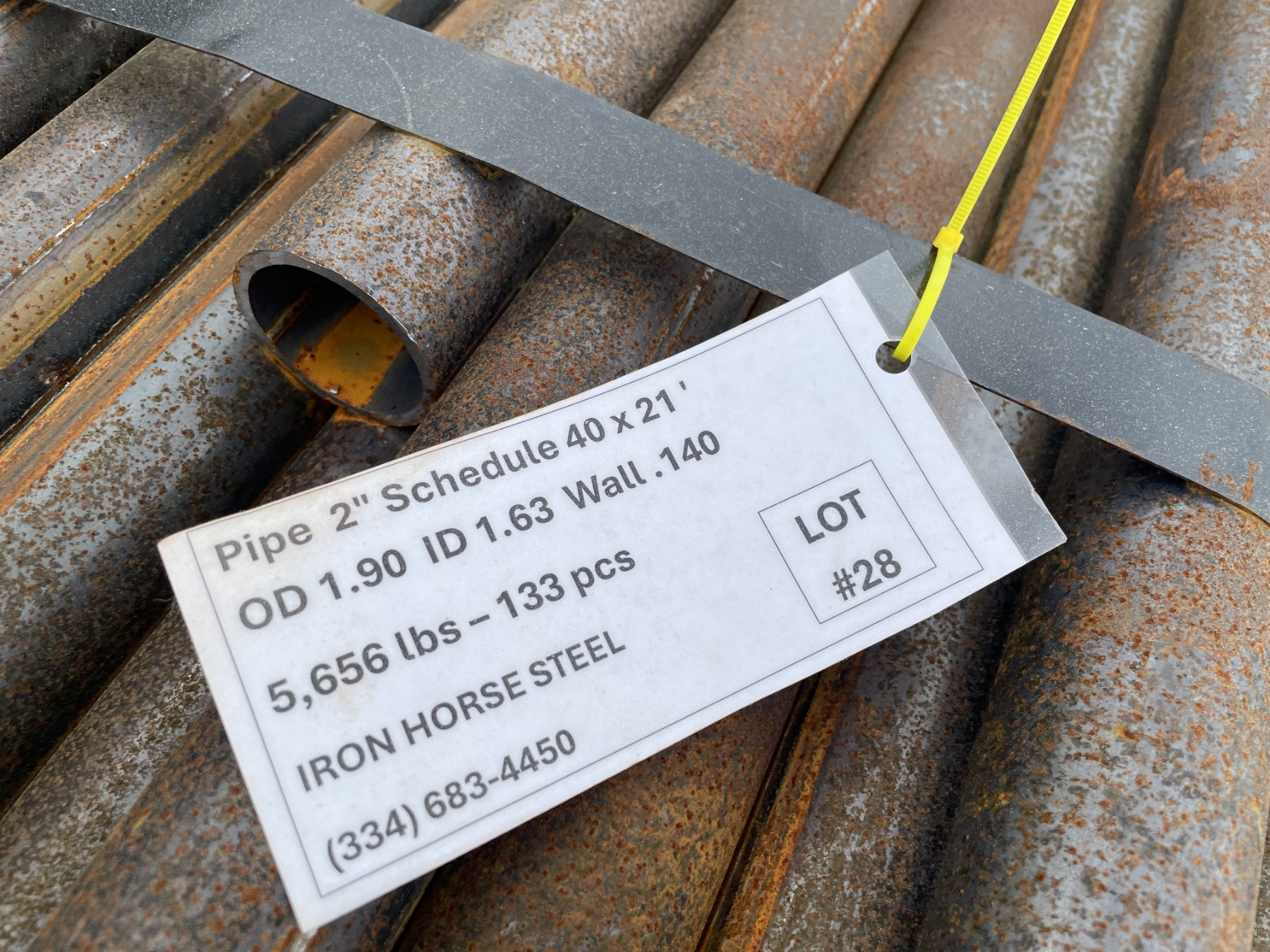 2" schedule 40 x 21', OD 1.90, ID 1.63, wall .140 (133) pcs