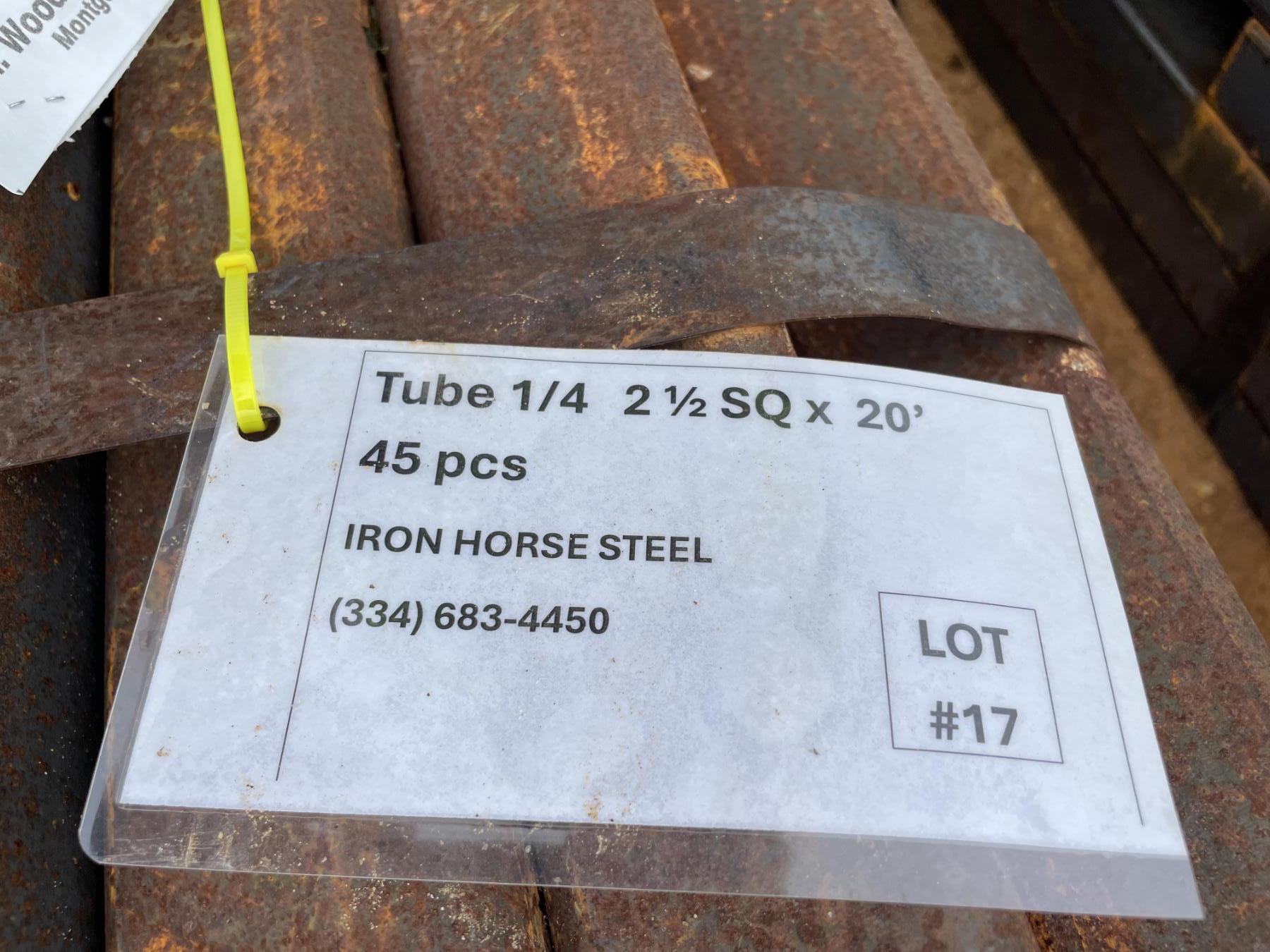 STEEL SQUARE TUBE, 1/8" X 2 1/2"SQ X 20' (45)