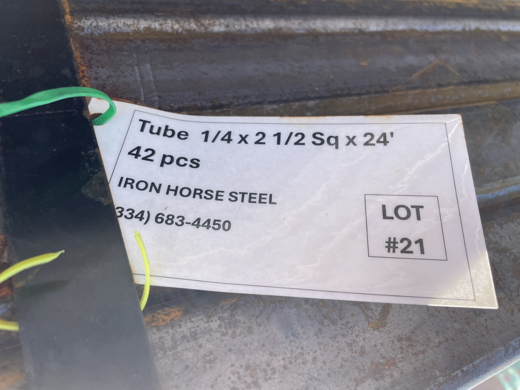 STEEL SQUARE TUBING, 1/4" X 2-1/2" X 24' (42 PIECES)