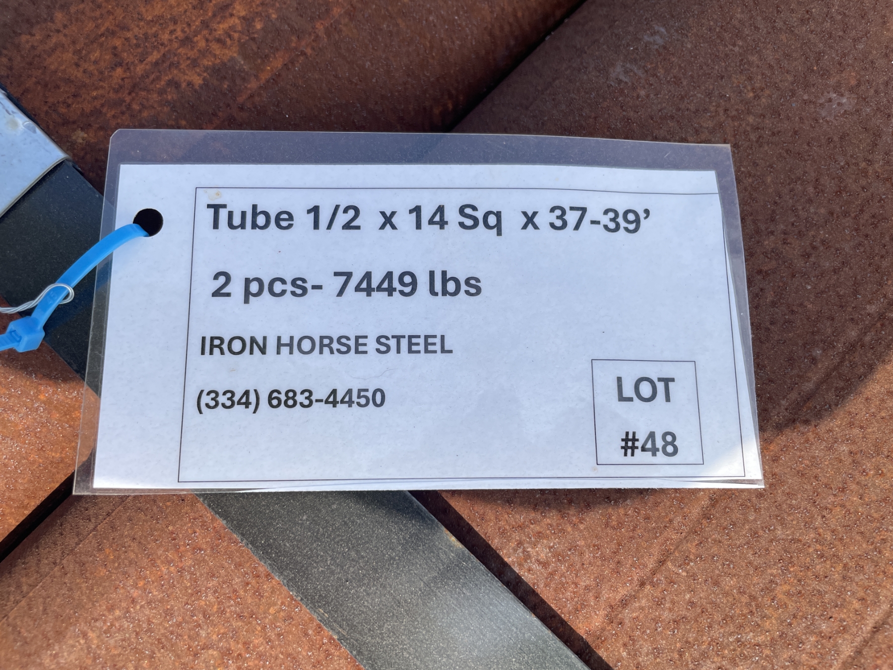 STEEL TUBE, 1/2" X 14"SQ X 37-39- (2 PCS)