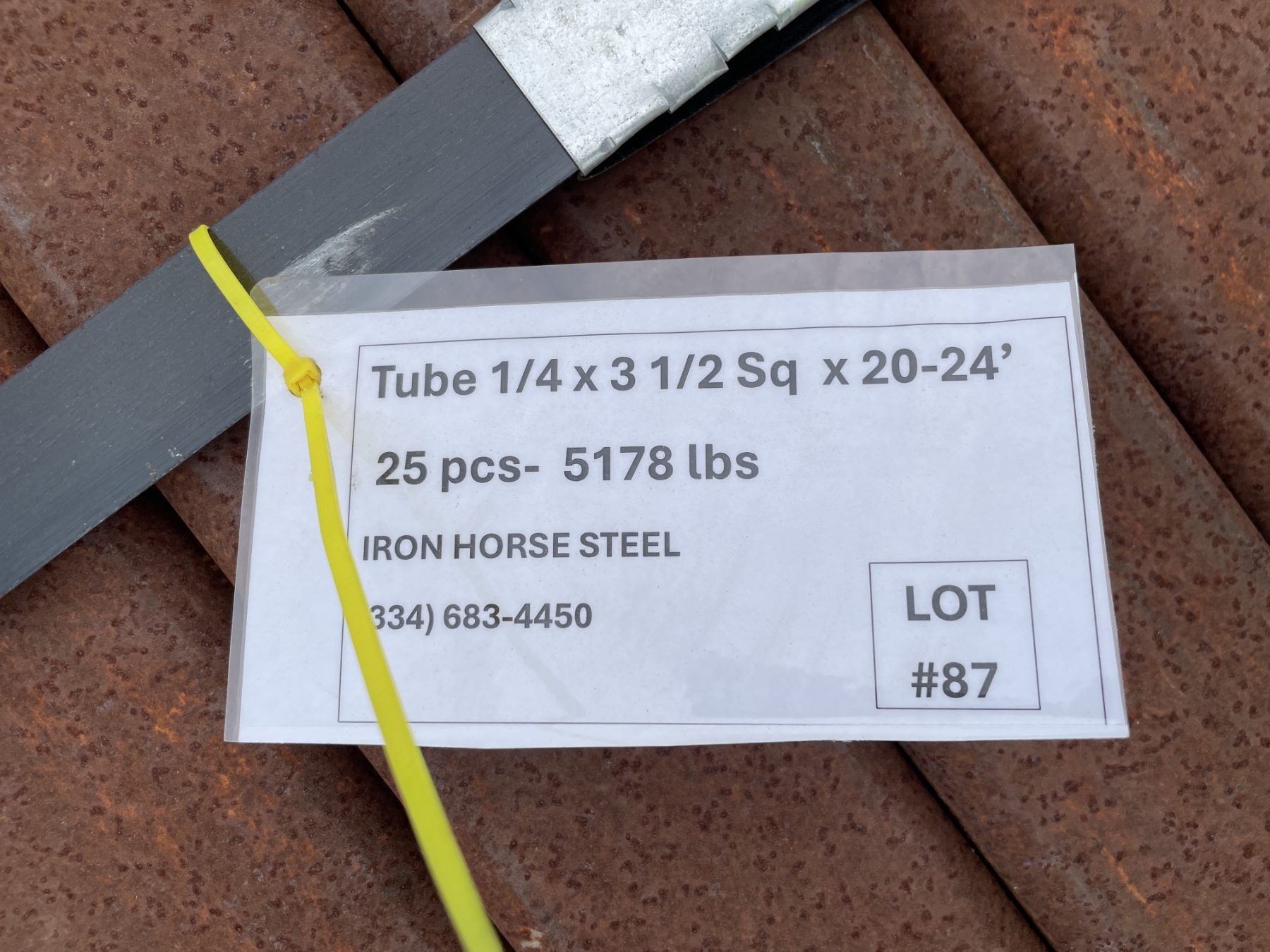 STEEL TUBE- 1/4" X 3-1/2" SQ X 20'-24' (25 PCS)