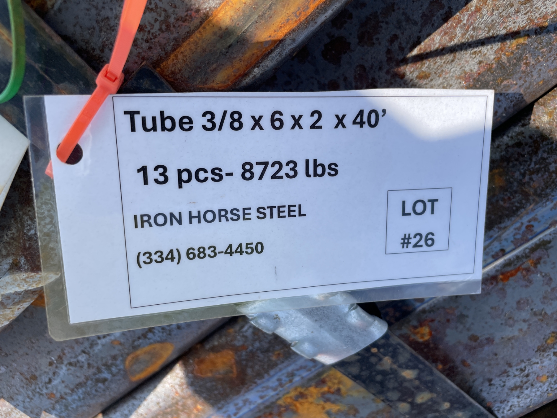 STEEL TUBE, 3/8" X 6" X 2" X 40' (13 PCS)