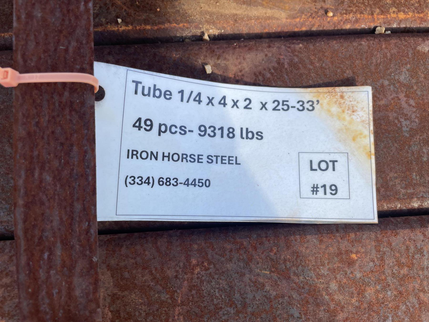 STEEL TUBING, 1/4" X 4" X 2" X 25'-33' (49 PCS)