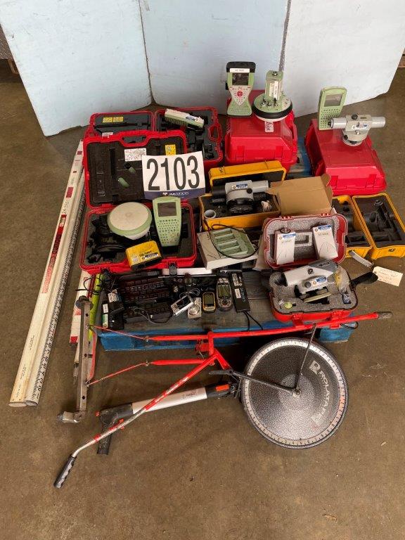 cameras, prism pole, distance measurers, GPS, leveling survey rods, slope meter, total electronic stations w/ accessories, levels, range finder meter, measuring wheel, Selling Offsite: Located in Tuscumbia, AL