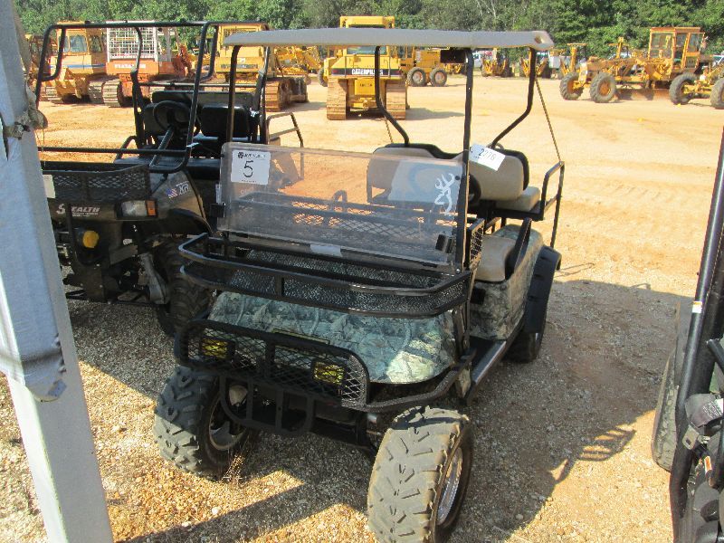 THE SILENT HUNTER ELECTRIC GOLF CAR, S/N 2217062, CANOPY, 2 FRONT RACKS, CD PLAYER, REAR SEAT W/SIDE RAILS, CHARGER