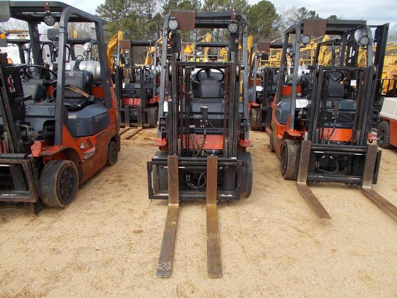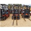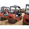 TOYOTA 7FGCU25 FORKLIFT, VIN/SN:95324 - PROPANE, SINGLE STAGE MAST, 42" FORKS, CANOPY, METER READING 31,024 HOURS